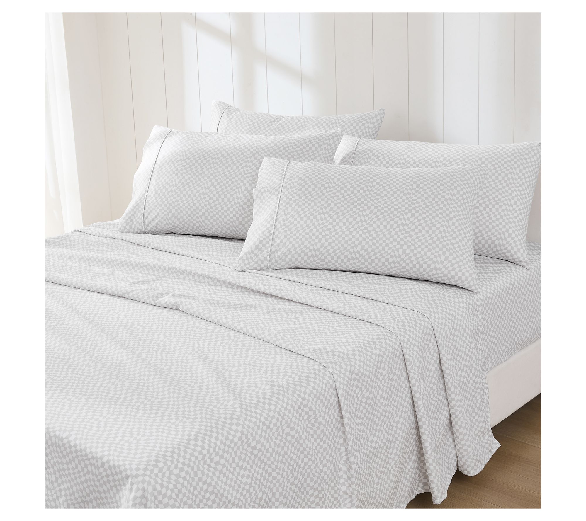 Give your bed a fresh new look with this wavy checkered sheet set, bringing retro flair and a splash of movement to your space. Soft microfiber wraps you in comfort, while the playful, optical illusion print adds extra fun to both adults' and kids' bedrooms alike. From Lush Decor.