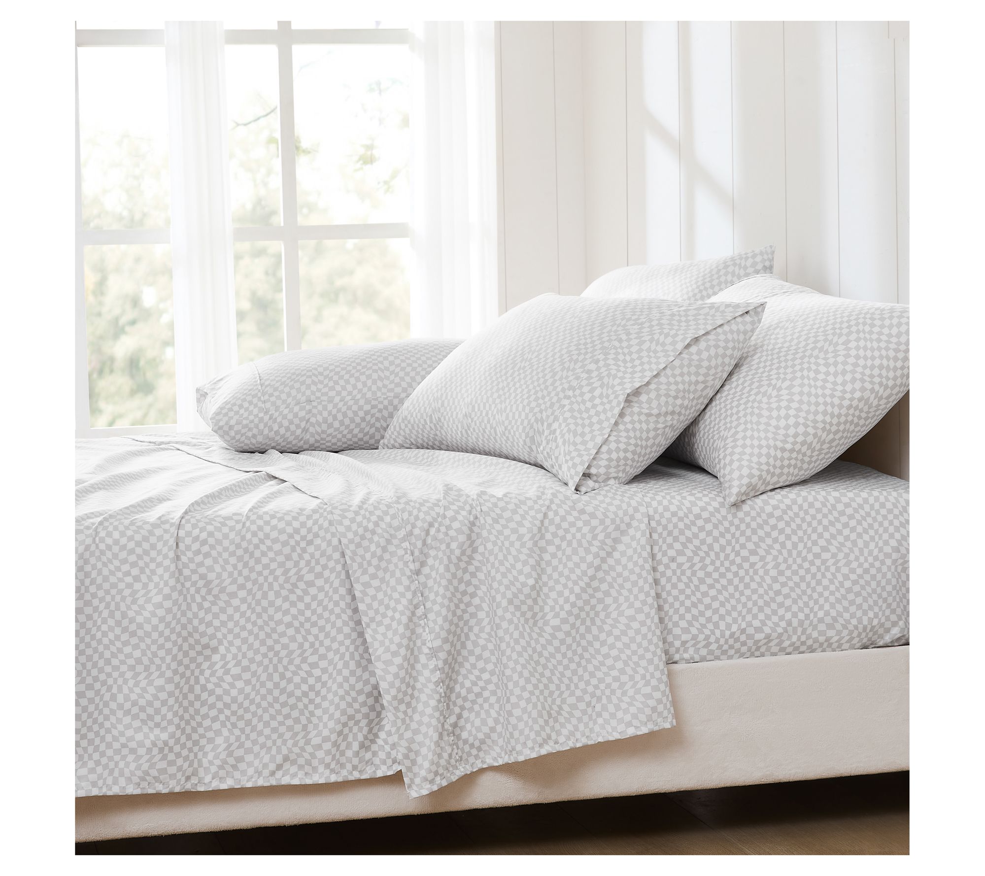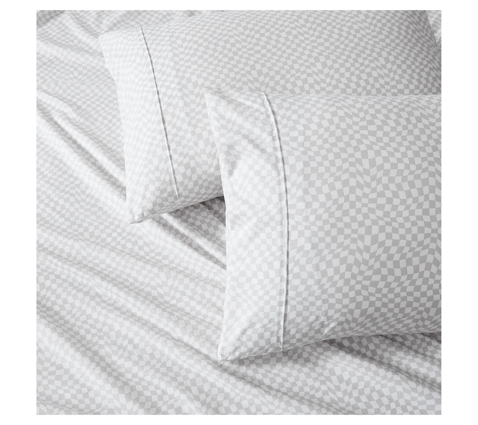 • Retro inspired distorted checkerboard print adds energy to your bed decor