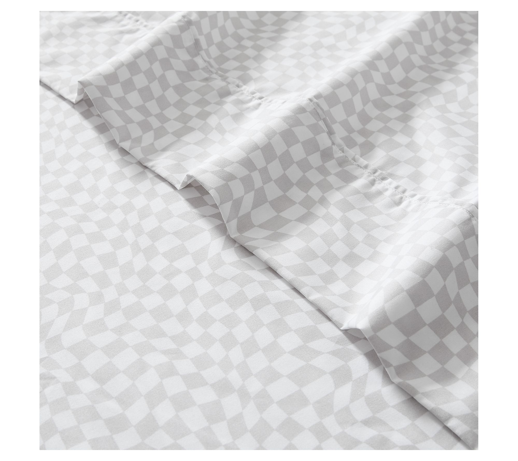 Bring playful energy to your space with this Circus Wavy Checks sheet set, where a retro-inspired checkered design creates a groovy focal point for your bedroom. Soft microfiber offers a comfortable backdrop for relaxing, while the set's generous inclusions make it easy to give your entire bed a style refresh. From Lush Decor.
