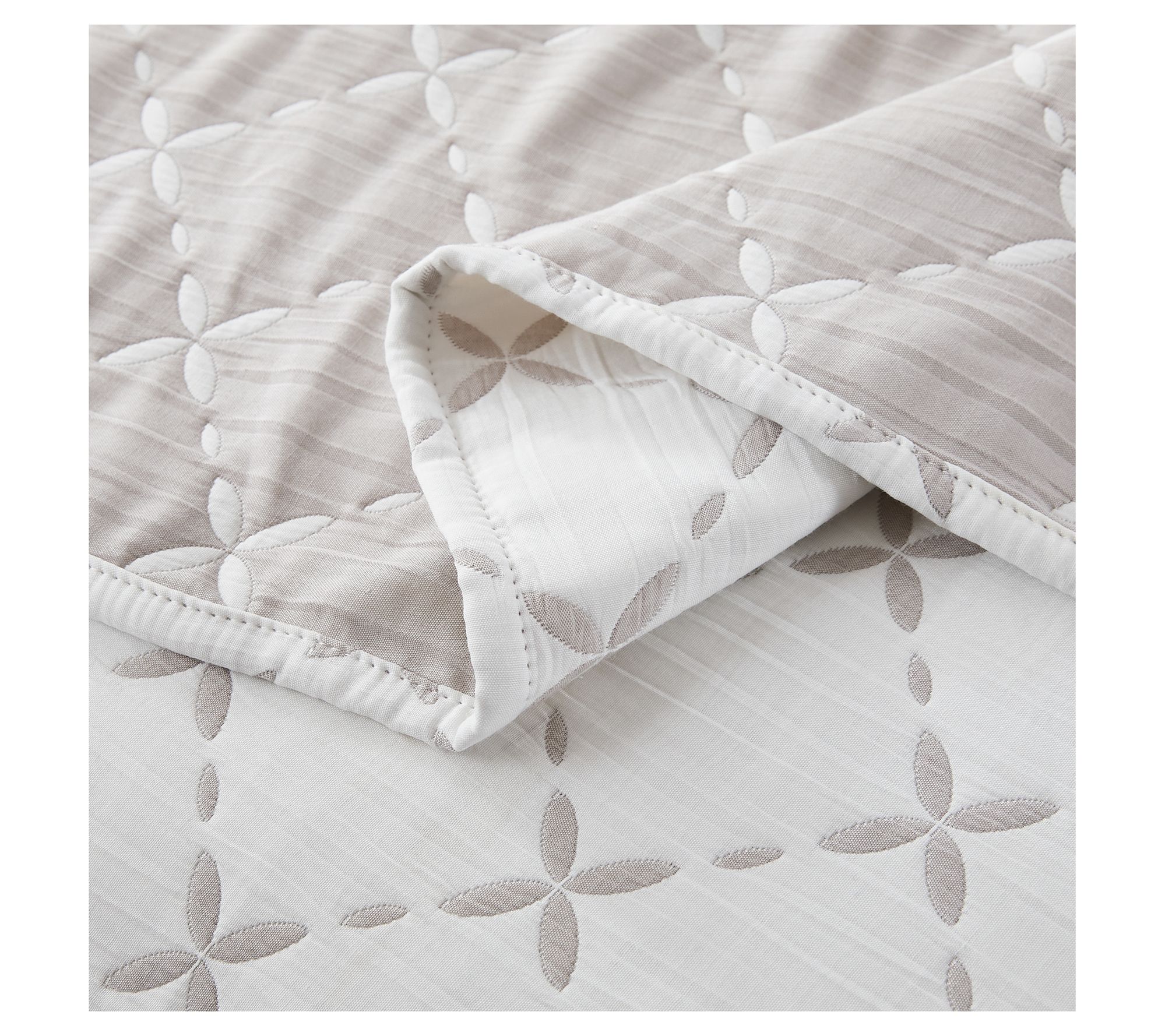 • Reversible matelasse coverlet with stitched diamond and leaf pattern