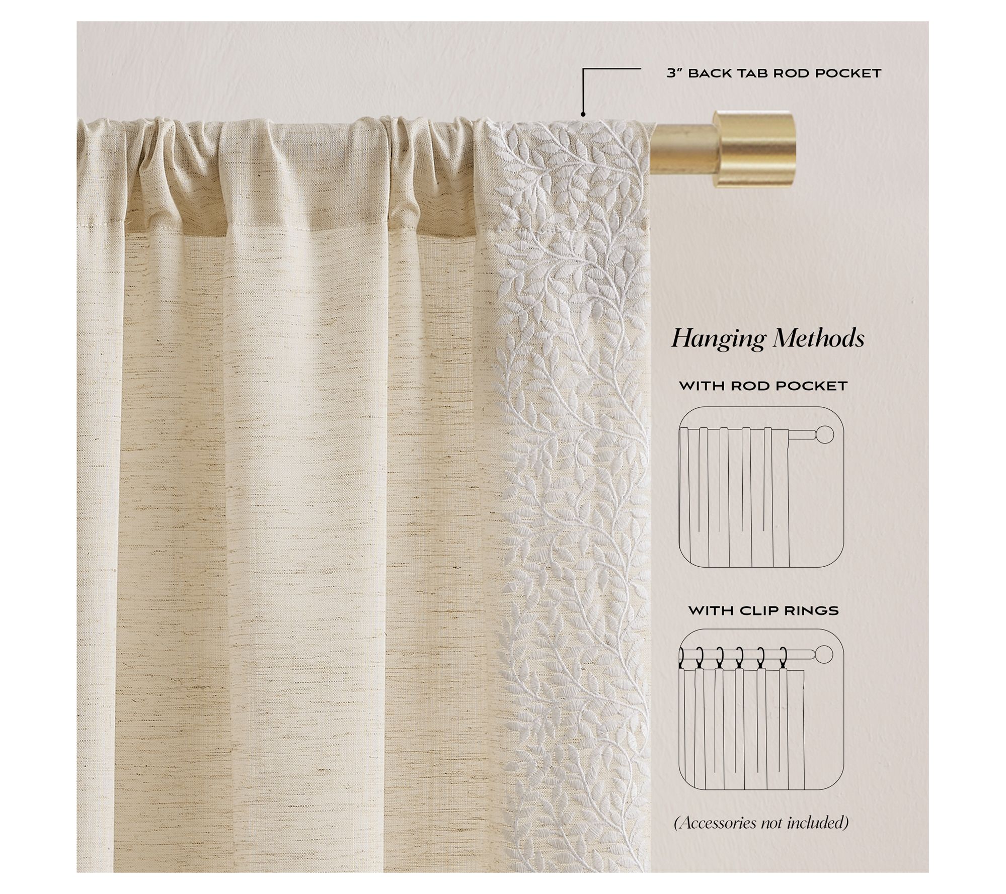 Delicate leaf embroidery and soft fabric come together in these window curtain panels, adding a subtle layer of charm to any room. Whether you're updating your living space or bringing a fresh accent to your bedroom, they filter sunlight beautifully while providing moderate privacy. From Lush Decor.