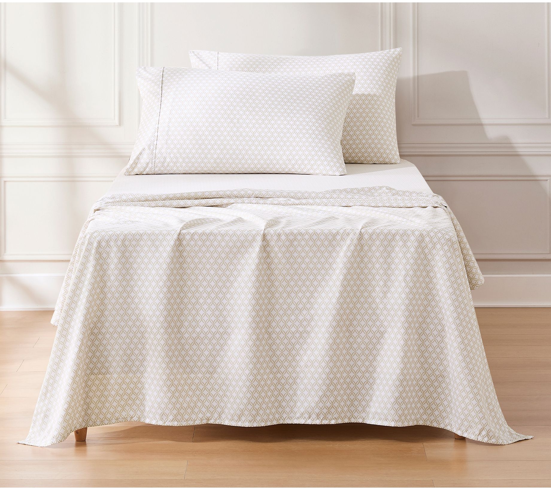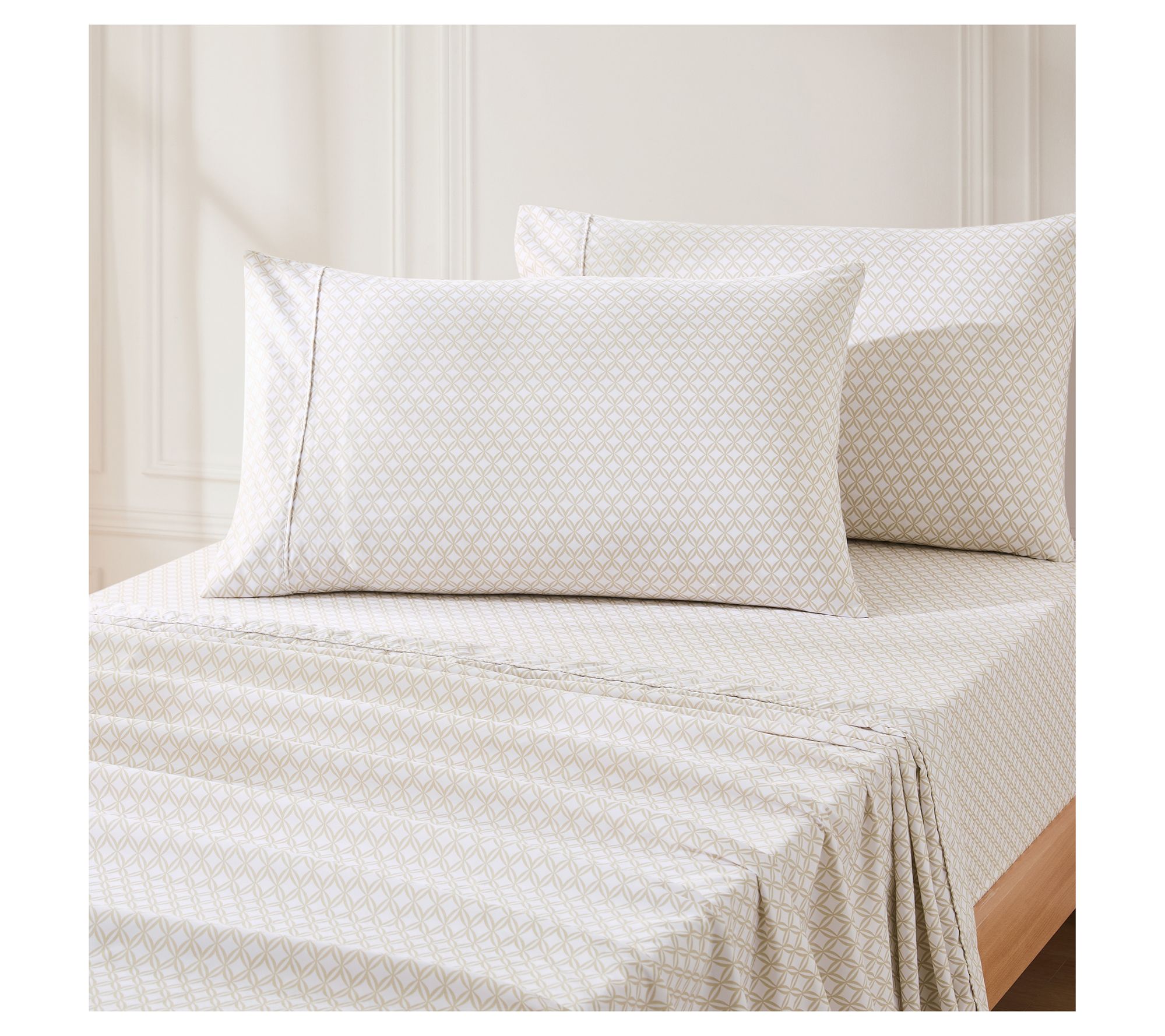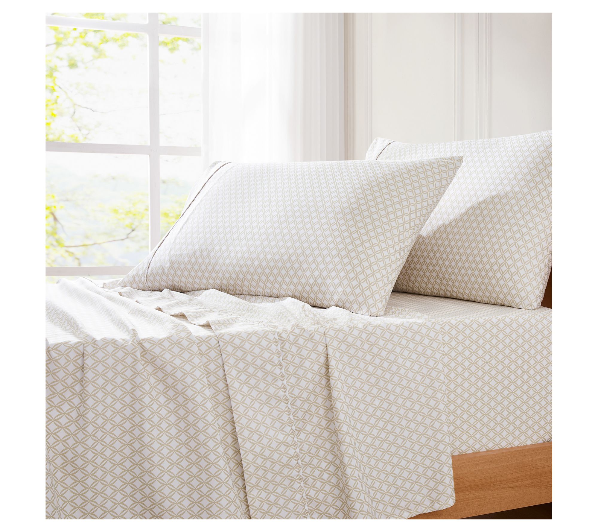 • Includes flat sheet, fitted sheet, and two pillowcases
