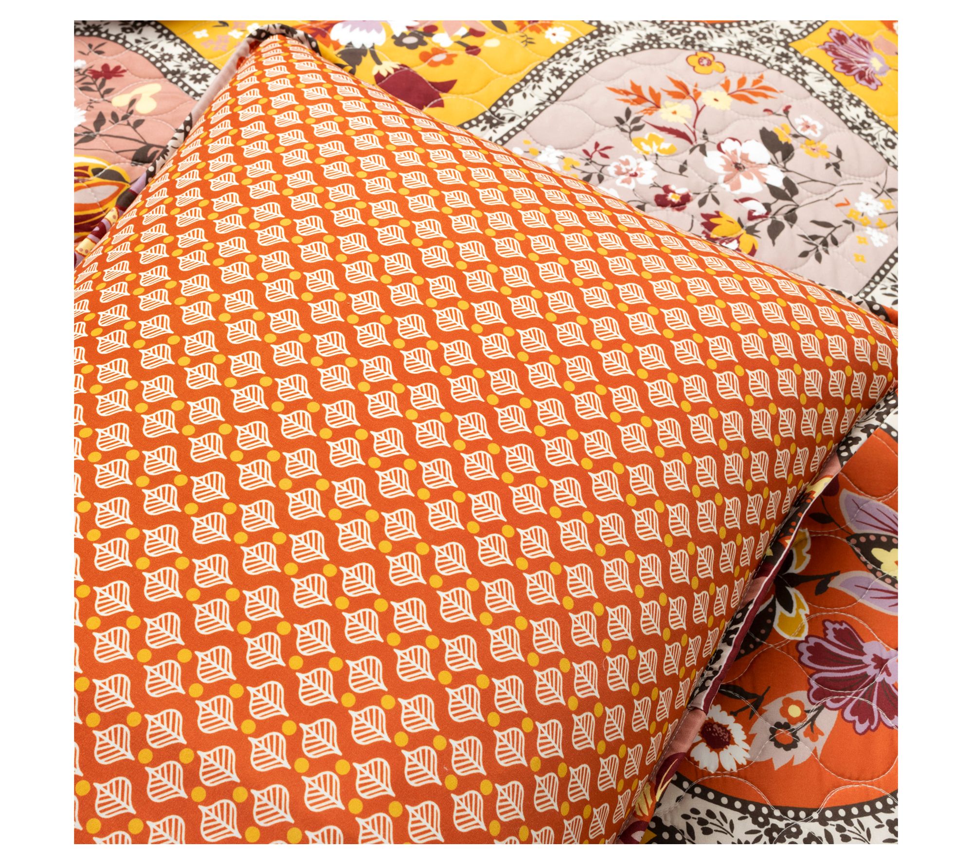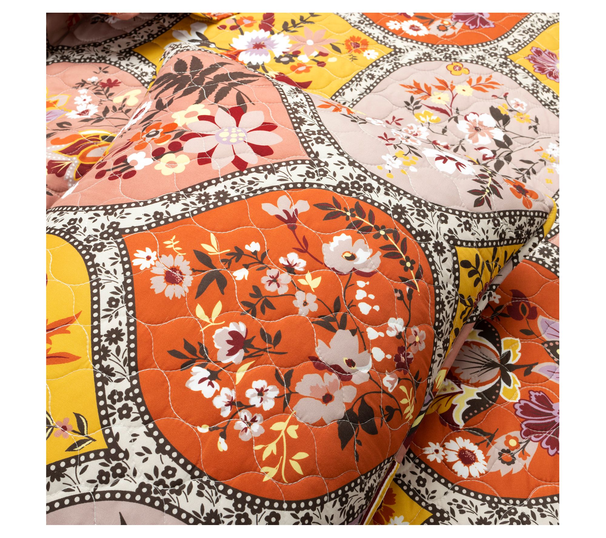 Embellish your bedroom with the comforting warmth of this cozy quilt set sporting a stylized floral design in bright colors. From Lush Decor.