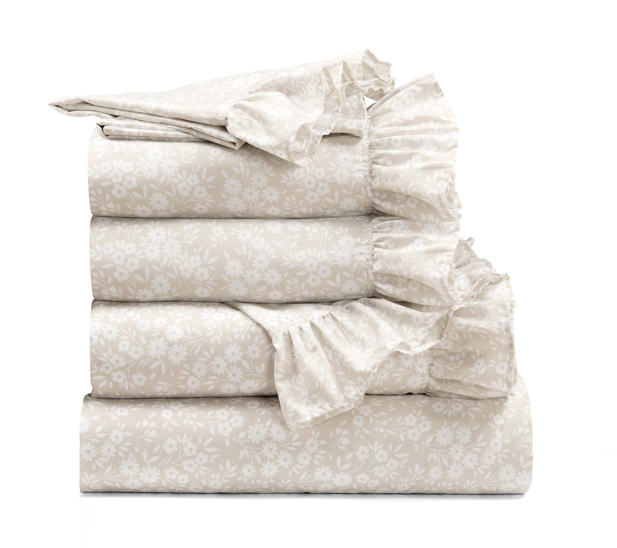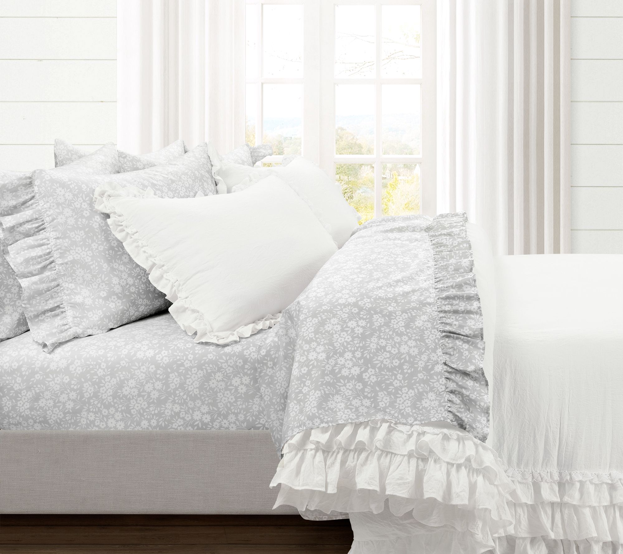 Give your bedroom a romantic vibe or a cozy cottage aesthetic with the beautiful floral design and ruffled accents of the Garden of Flowers sheet set. From Lush Decor.