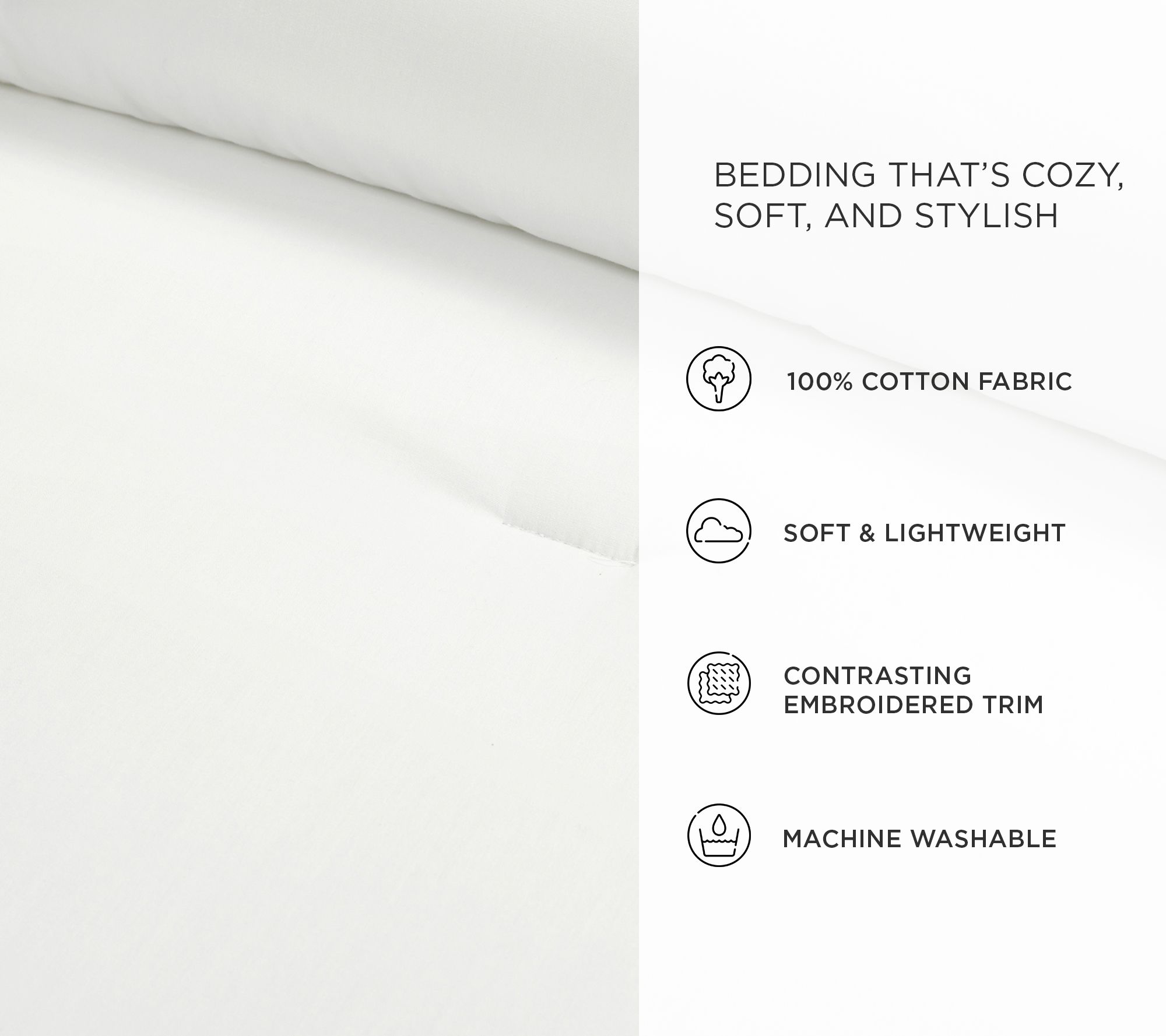 Transform your bedroom into a serene retreat with the elegant style of the Lush Decor Hampton embroidered comforter set. This luxurious, all-season bedding features a solid white comforter with a contrasting black embroidered edge, providing a sophisticated, hotel-inspired look to any home decor. From Lush Decor.