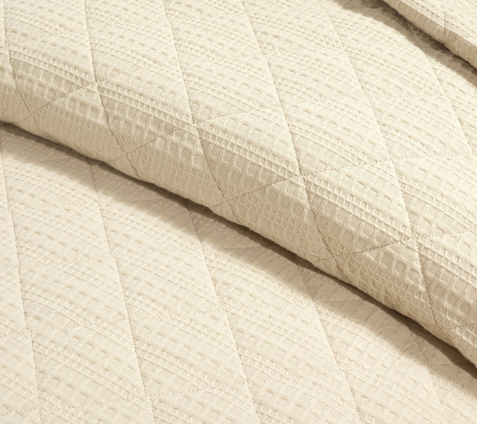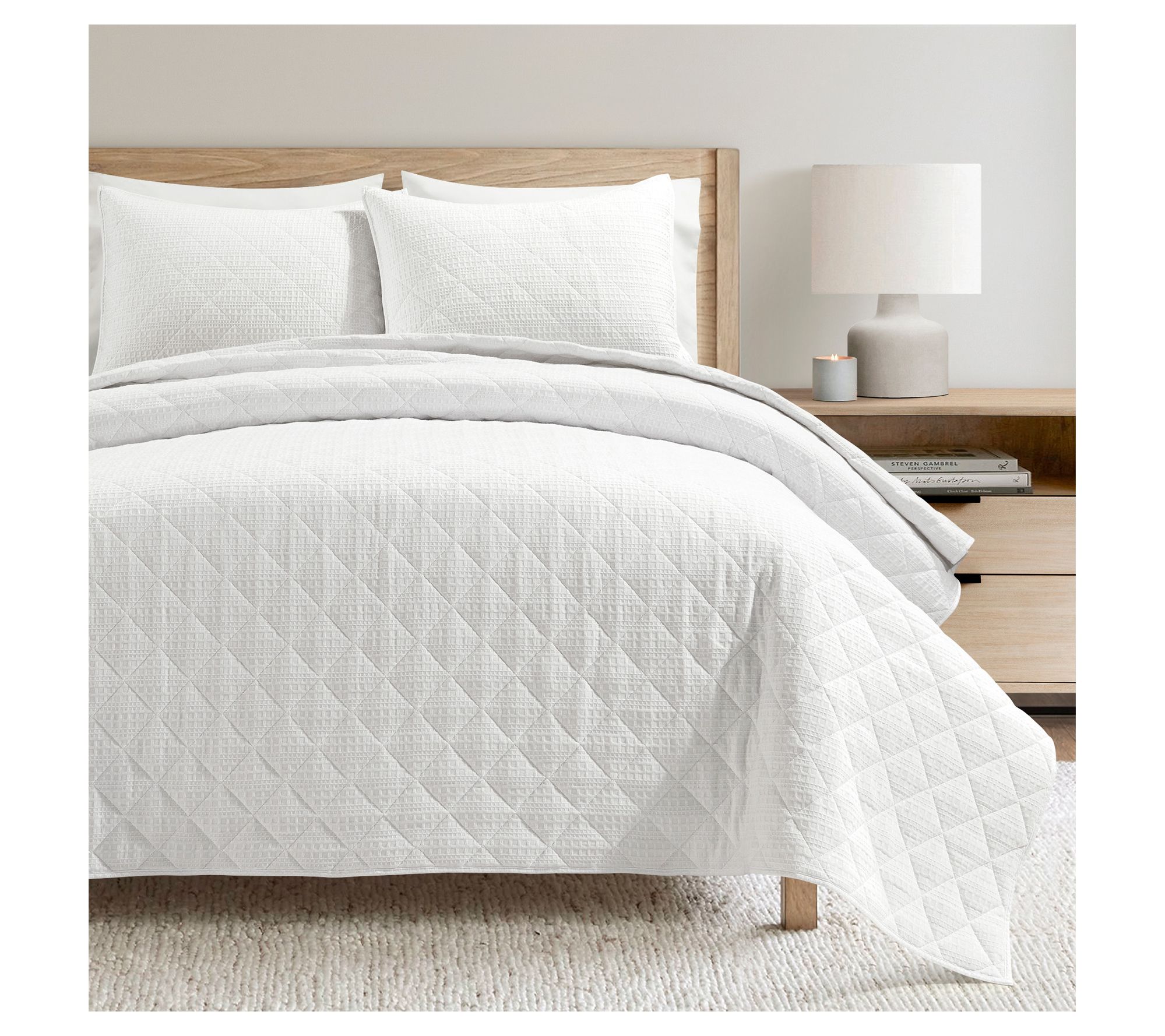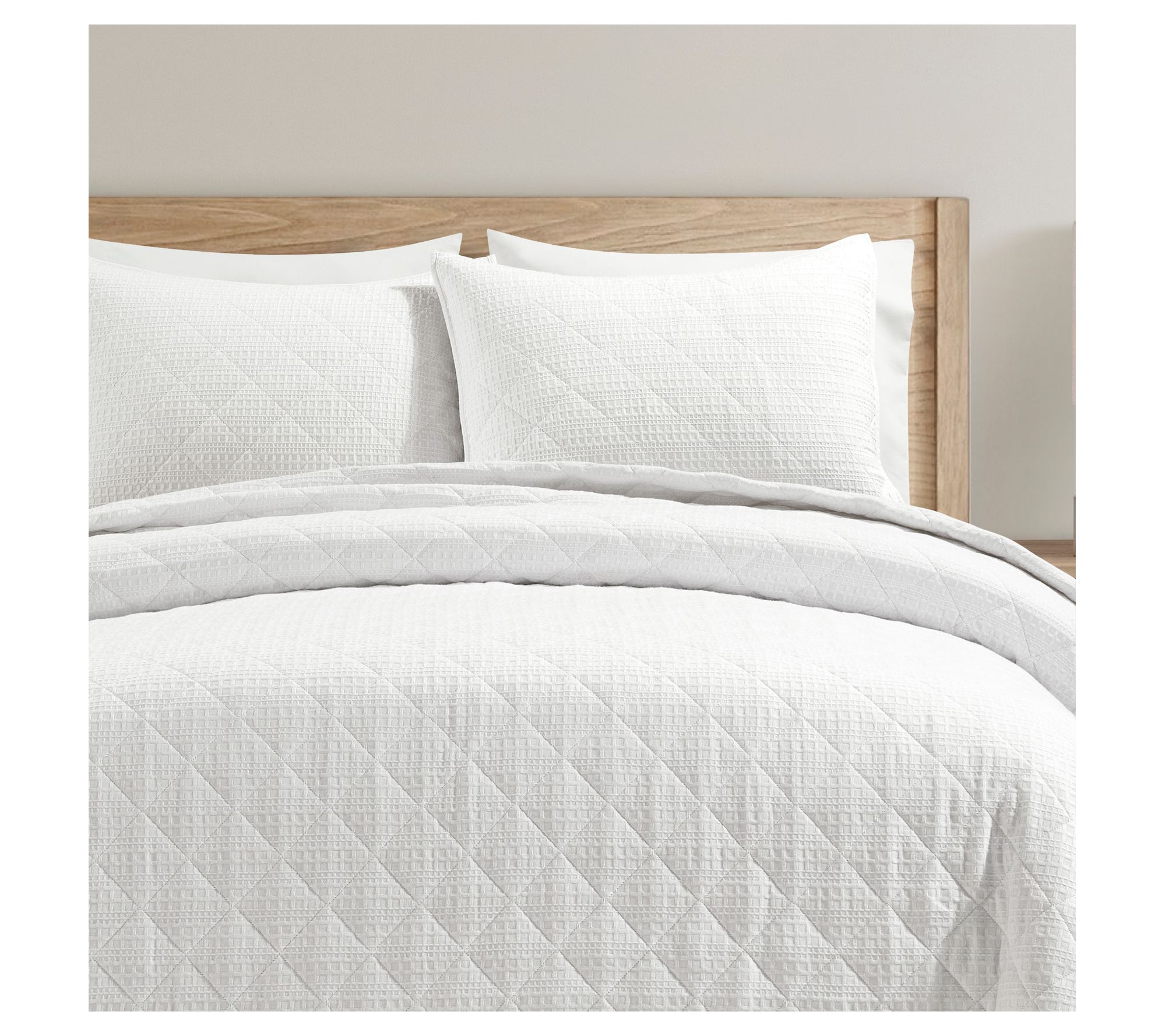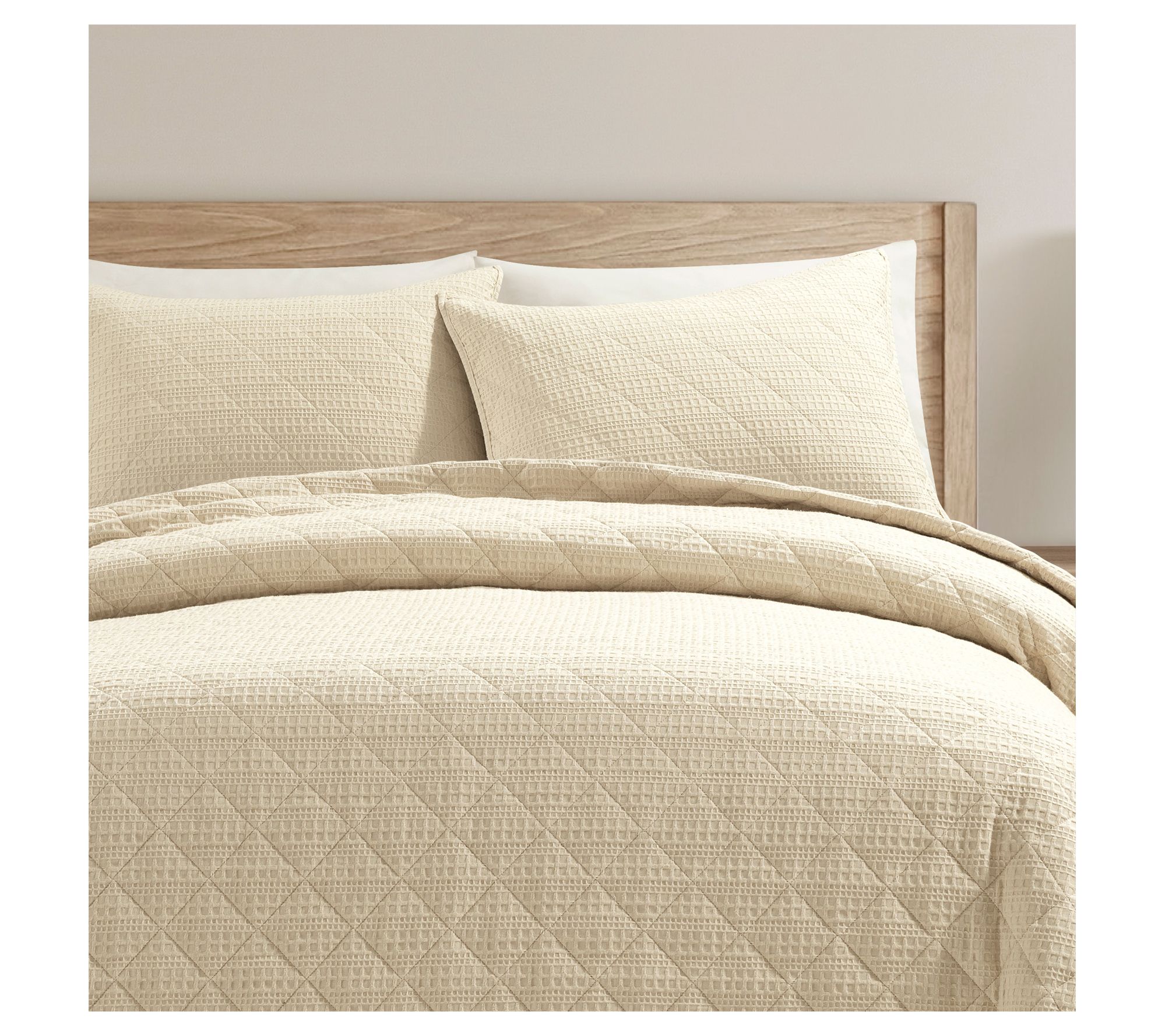 Transform your bedroom into a cozy haven with the Lush Decor Haniya solid waffle quilt set. This three-piece bedding set, with its soft waffle knit texture and neutral color, adds a touch of elegance to any decor style. From Lush Decor.