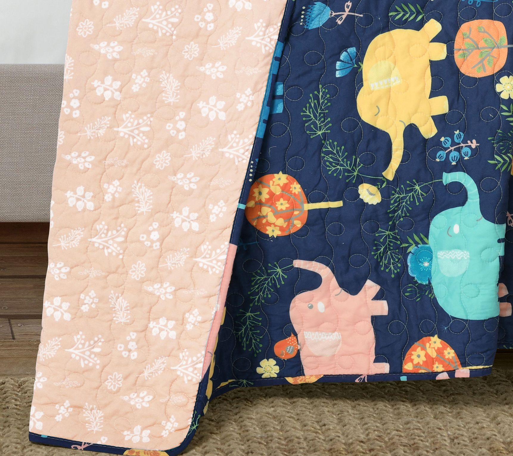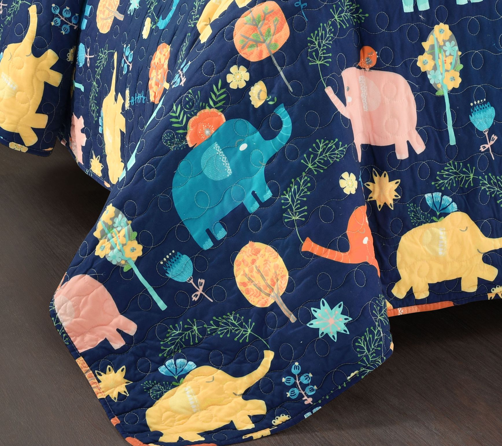 The elephant in the room? Why, it's this so-cute elephant quilt set, with a decorative pillow to match! From Lush Decor.