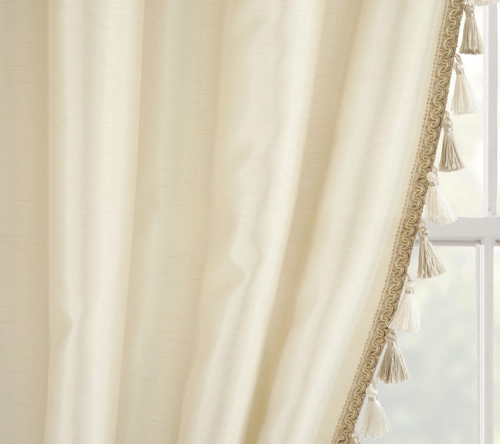 Bringing a luxurious look to your home has never been easier. Frame your windows with the elegant style of this silky curtain set. With its unique texture and tassel details, it's sure to captivate family and guests alike. From Lush Decor.