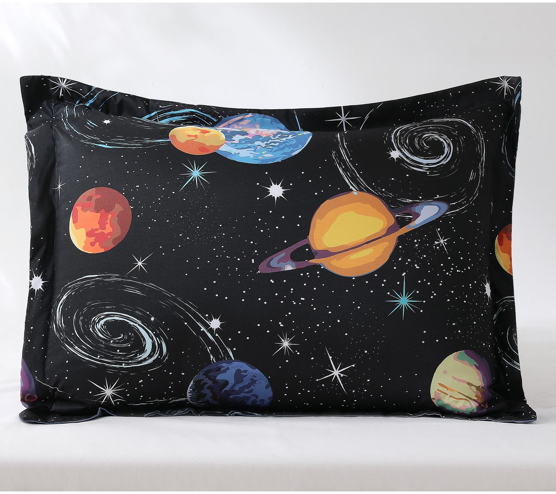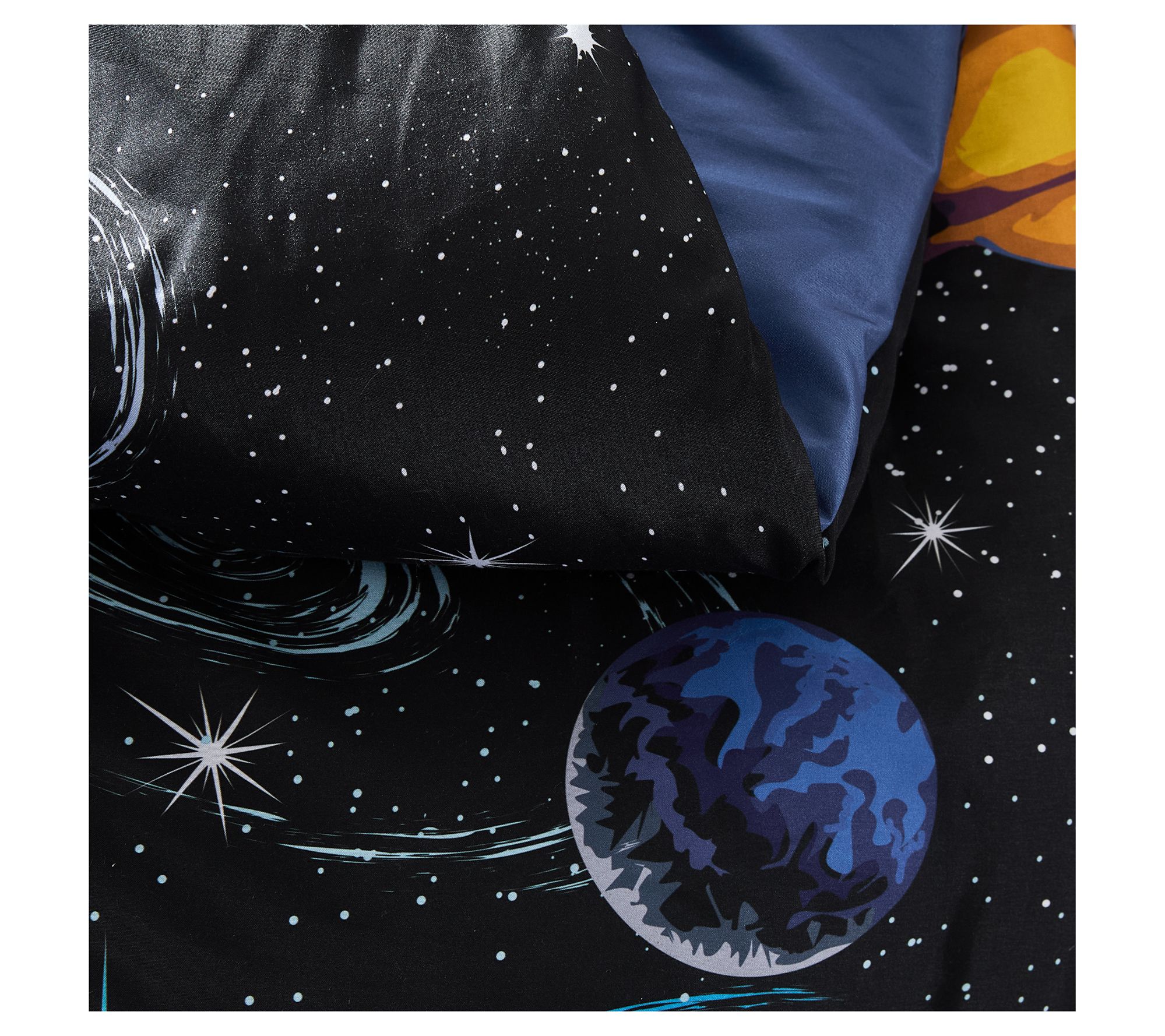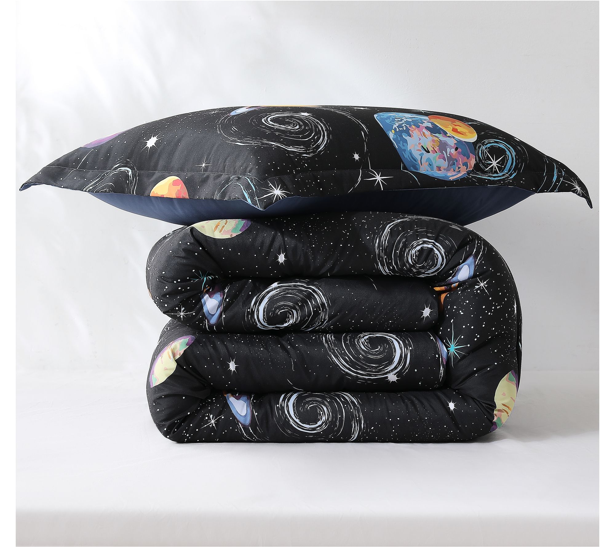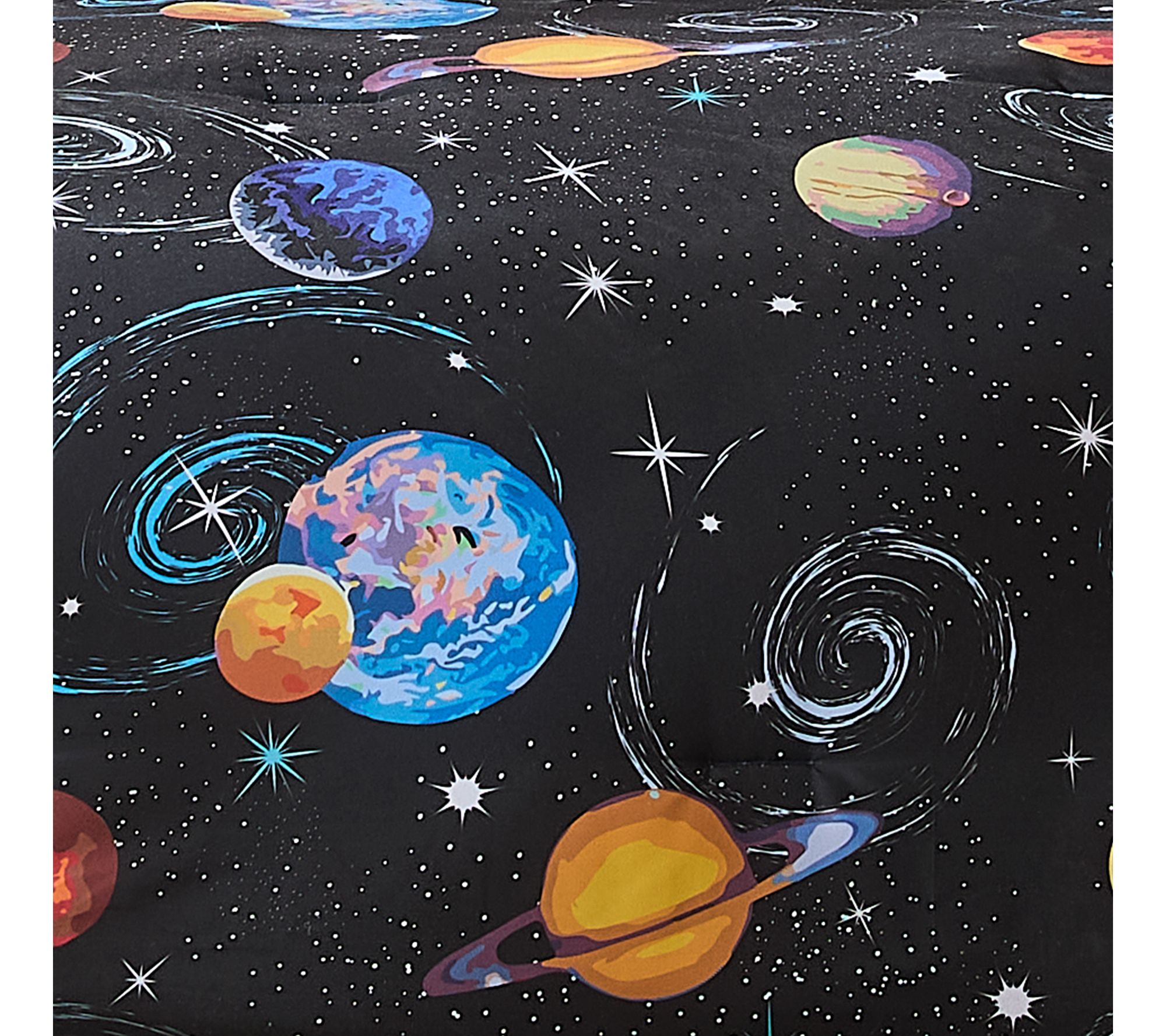 Turn bedtime into a cosmic adventure with the Mysterious Universe comforter set, featuring planets, stars, and galaxies drifting across a dreamy night sky. Soft microfiber fabric and down alternative fill offer cozy comfort, while the included sheets and decorative pillow make updating any aspiring astronaut's room quick and easy. From Lush Decor.