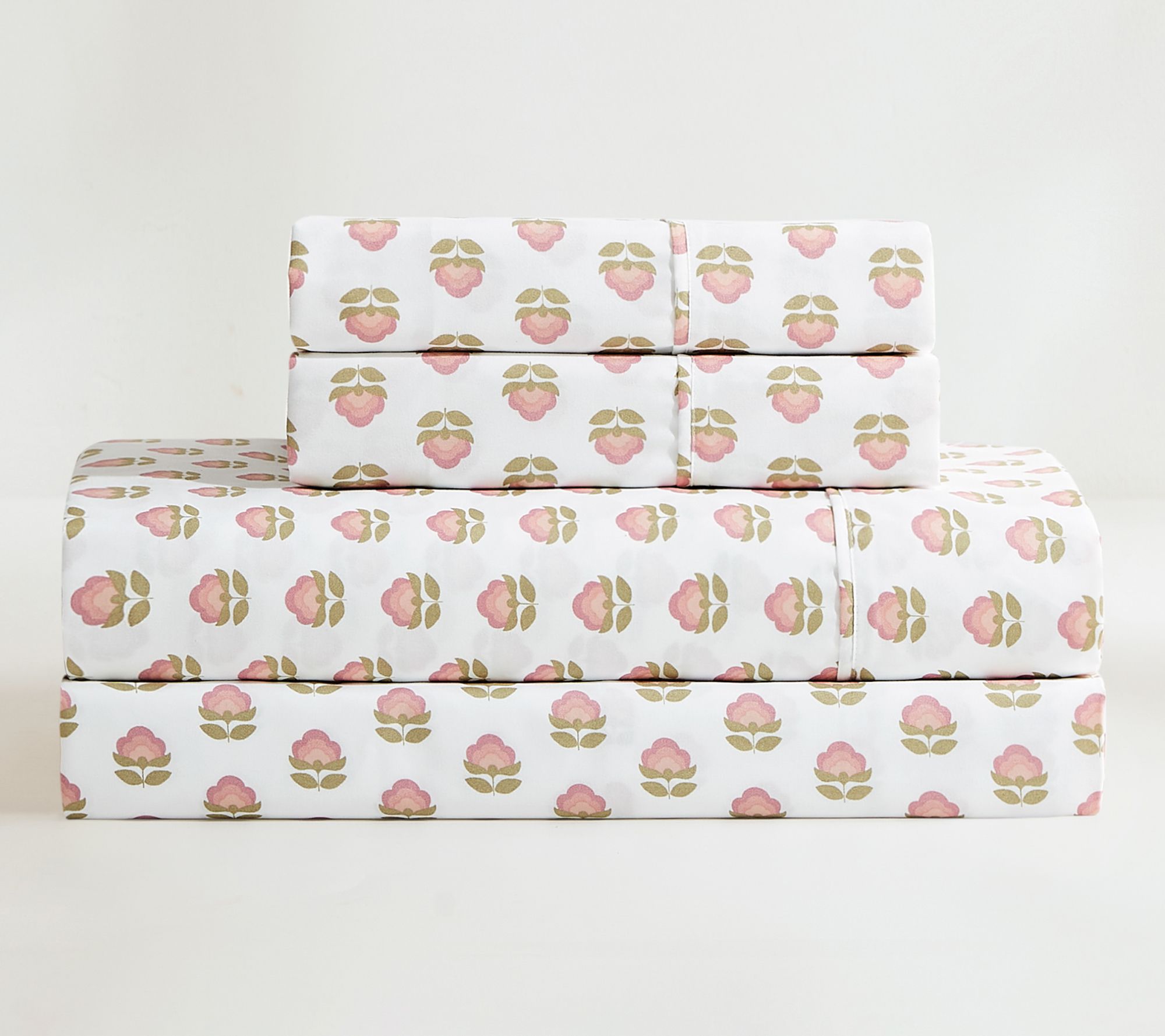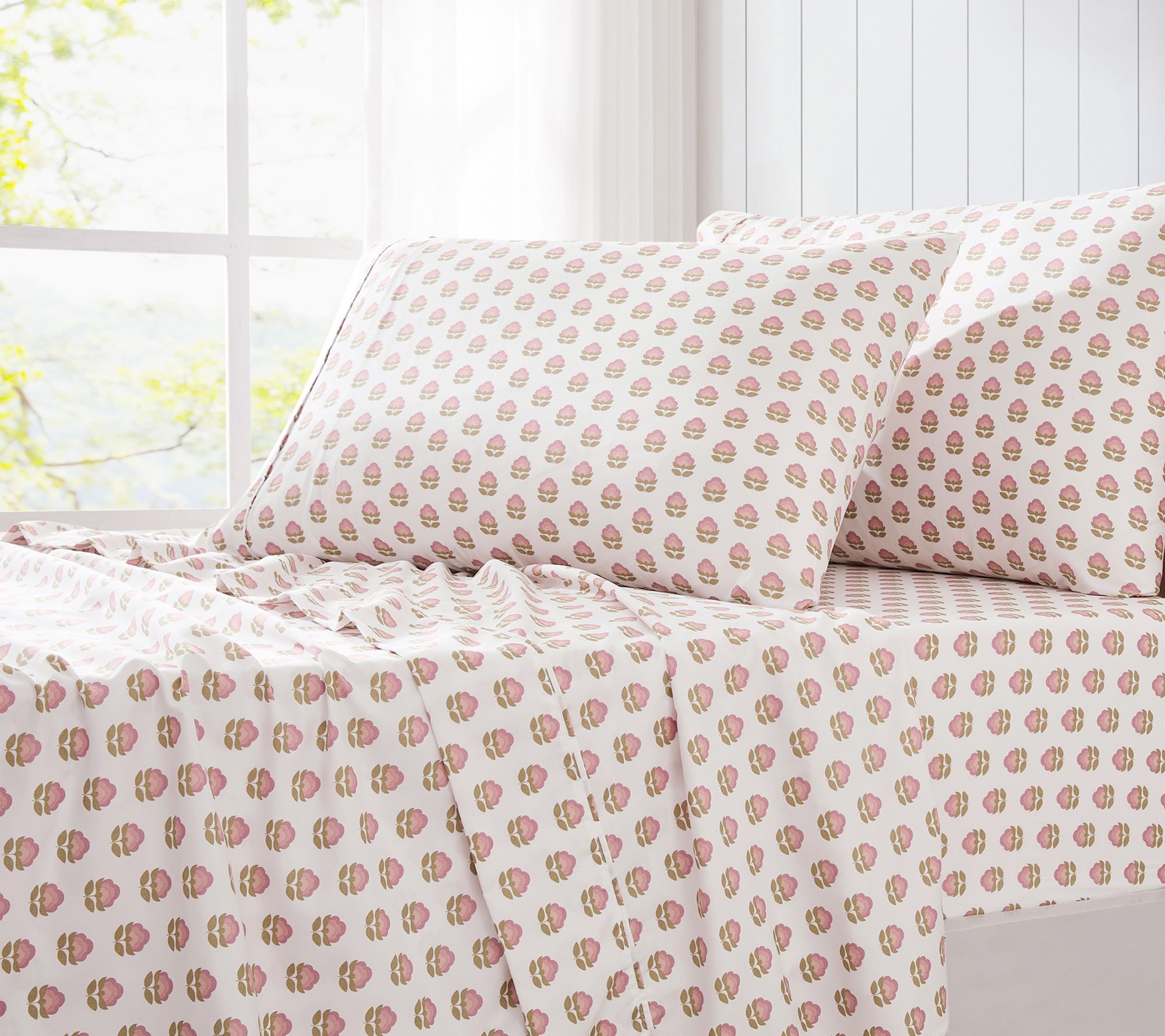 Bright blossoms and a soft peach palette bring a sweet touch to quiet mornings and restful nights. This floral sheet set helps create a cozy haven in your bedroom, delivering gentle comfort whether you're curling up with a book or winding down after a busy day. From Lush Decor.