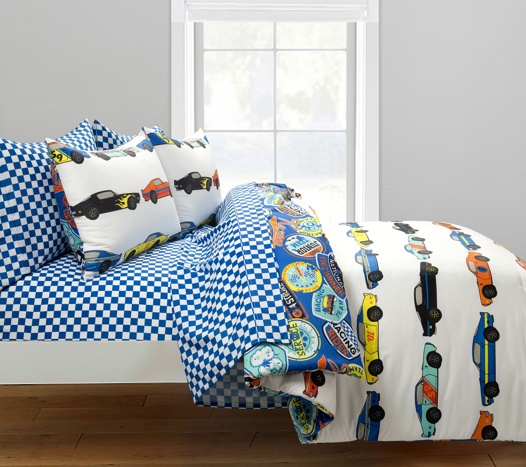 Rev up your child's imagination with this fun and exciting race car bedding set. From Lush Decor.