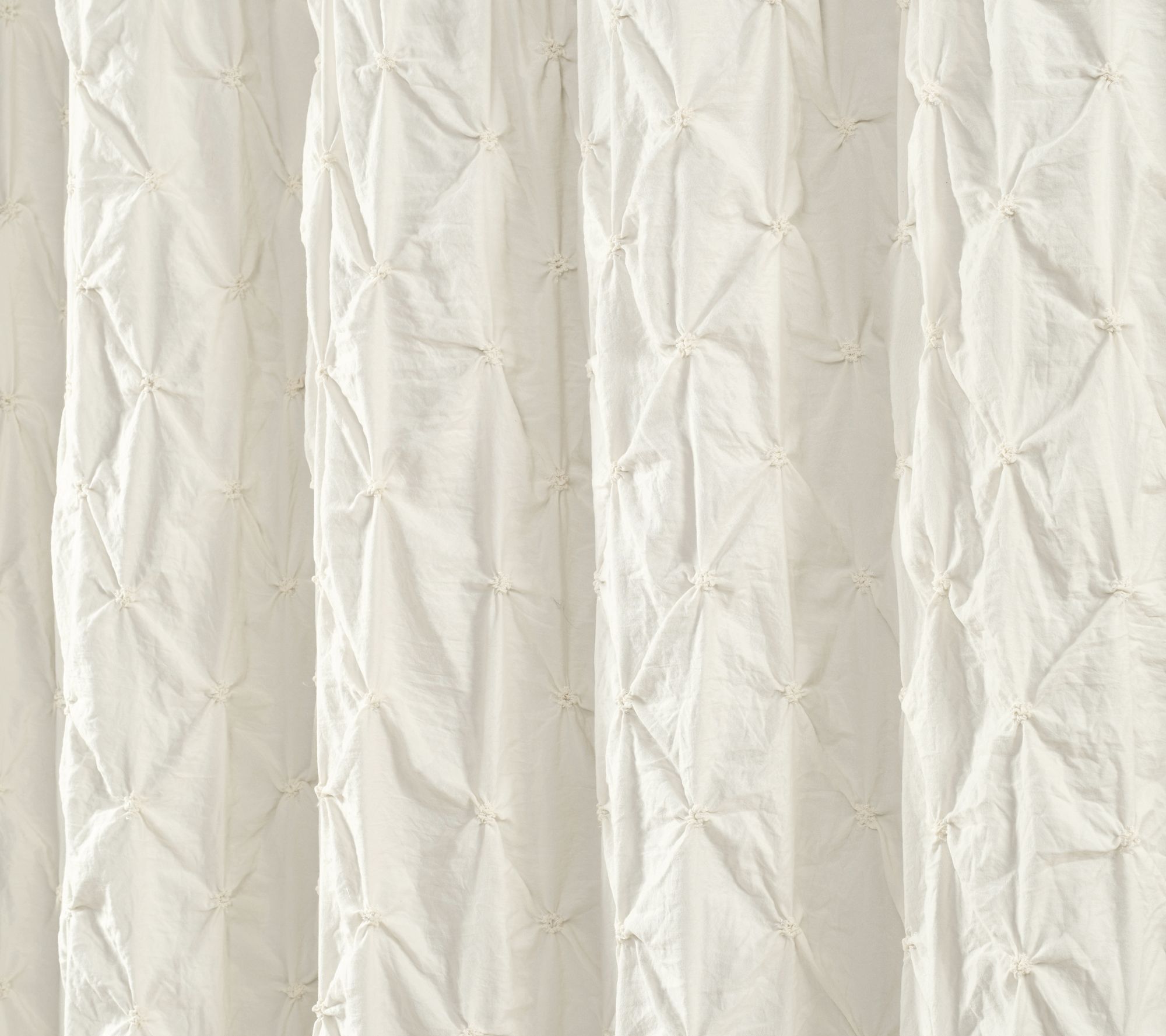 Elevate the look of your bathroom with this beautiful Ravello pintuck shower curtain. From Lush Decor.