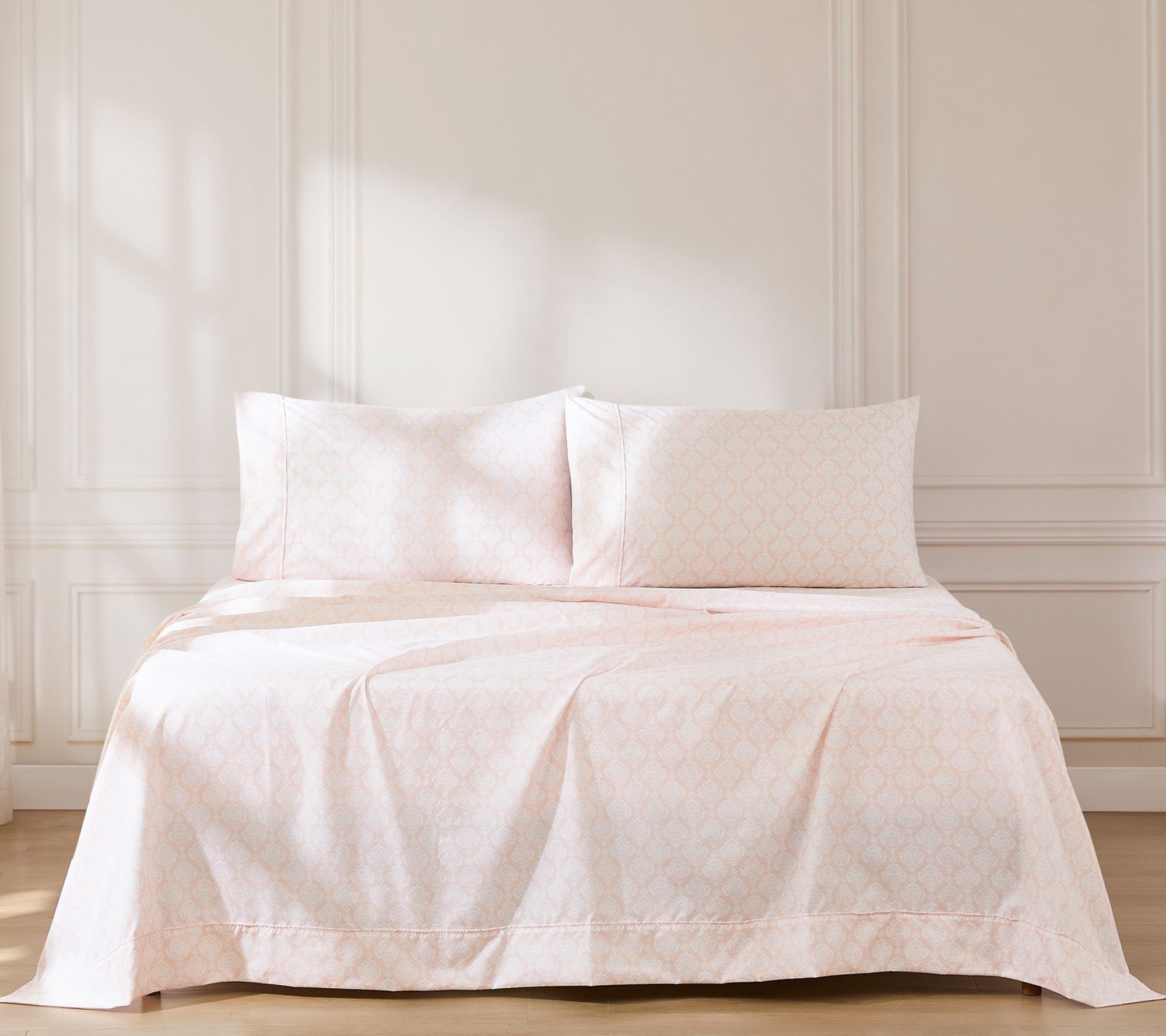 Lush Decor Romer Damask Sheet Set Peach 6-PieceSet Queen