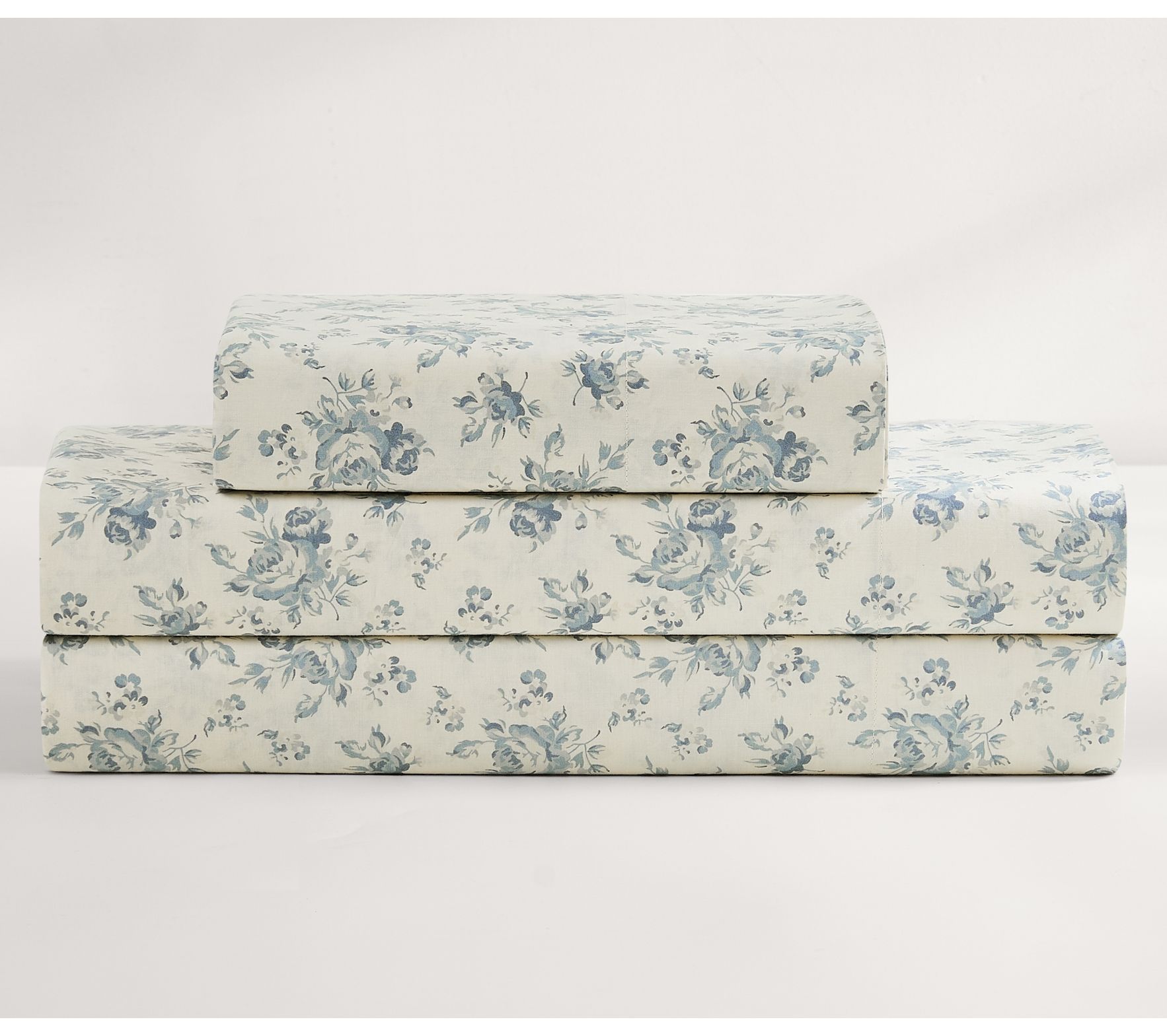 Lush Decor Rose Garden Cotton Sheet Set Blue 3-Piece Set Twin