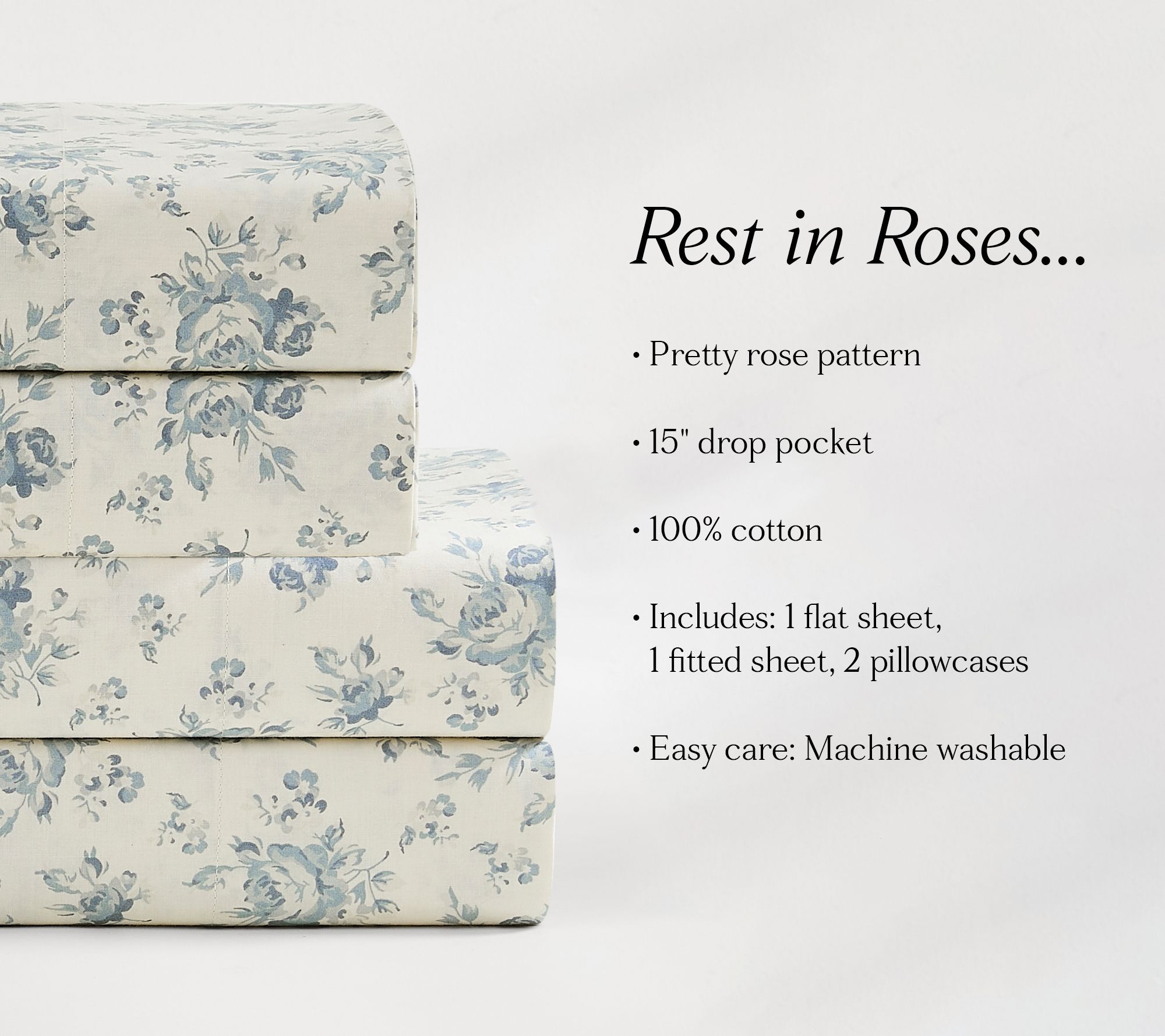 • Includes flat sheet, fitted sheet, and two pillowcases