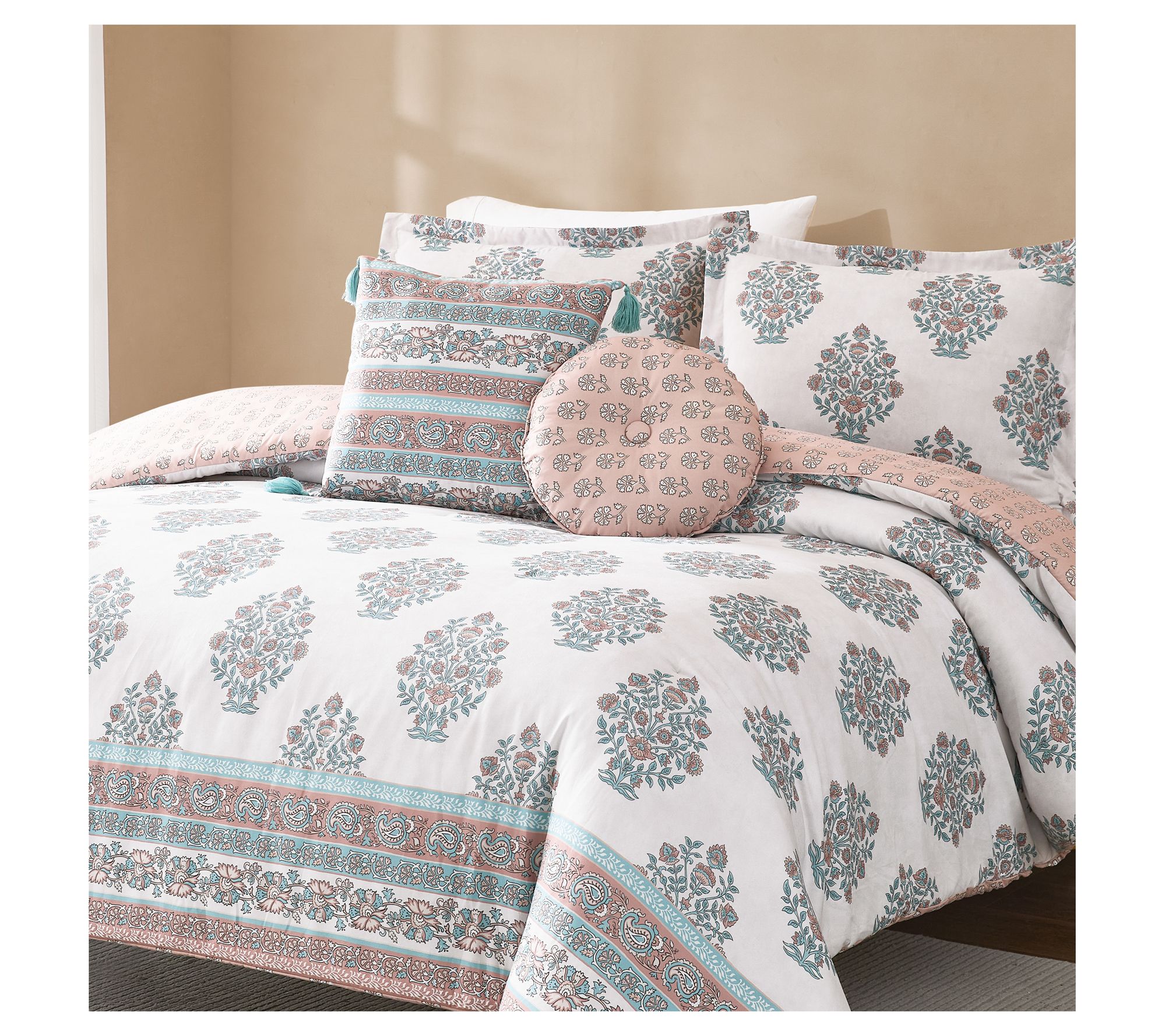 • Includes one comforter, two pillow shams, and two decorative pillows