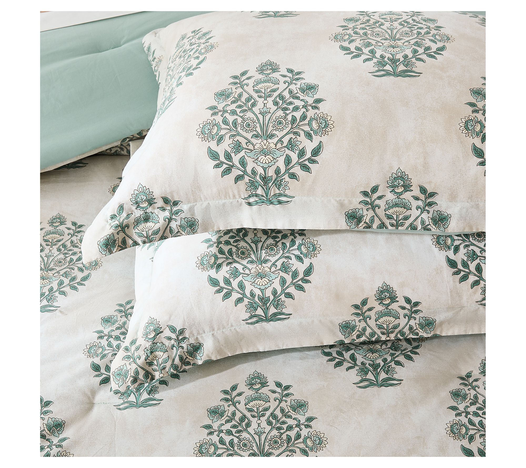 Transform your bedroom into a breezy retreat with the Sofia Flower Block Cotton Comforter Set, where vintage-inspired floral prints set a welcoming mood. The soft cotton comforter, paired with coordinating shams, pillows, and a bed skirt, brings boho charm and plush comfort for slow mornings and cozy nights. From Lush Decor.