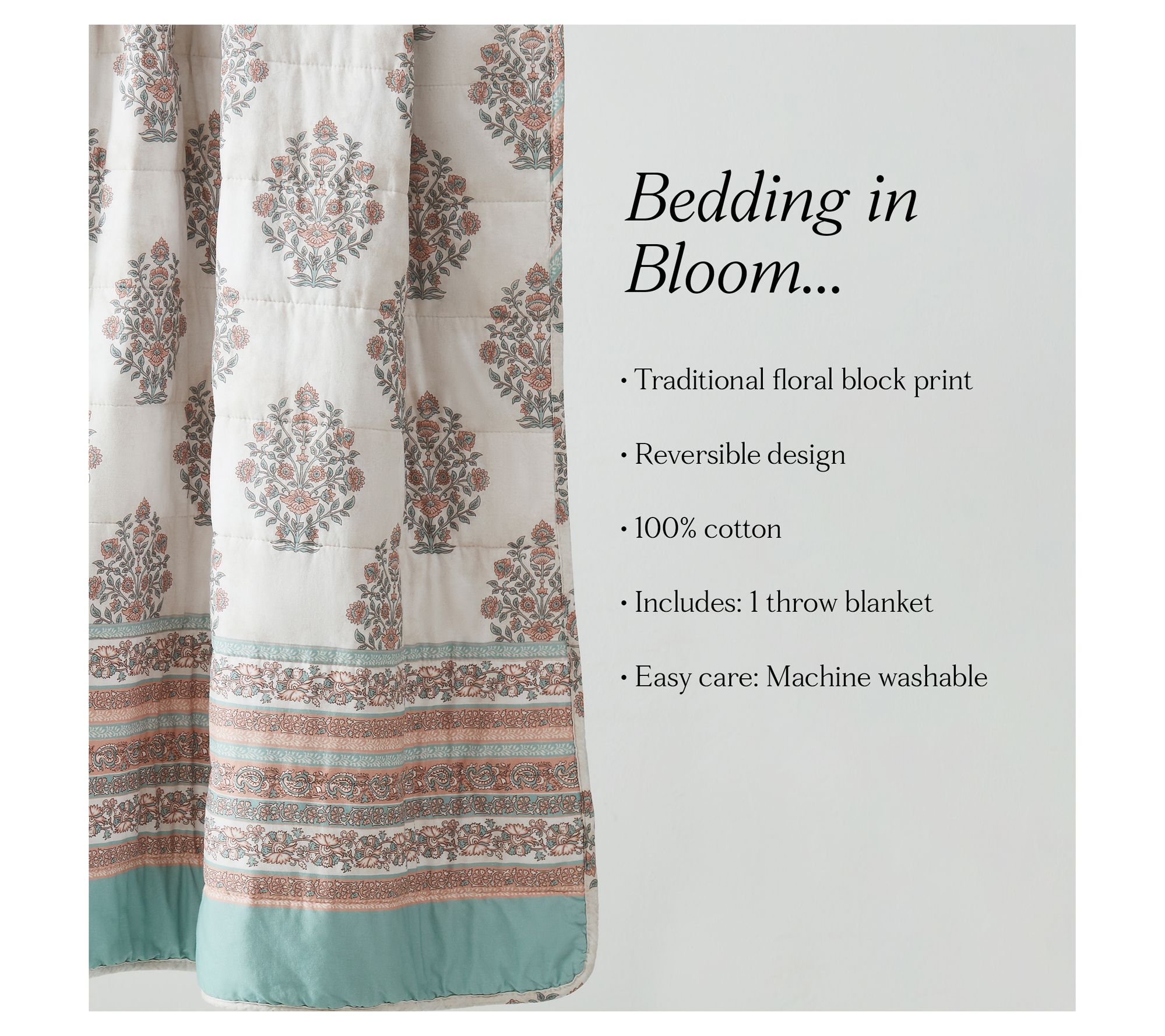 Soft cotton comfort and eye-catching floral pattern come together in this reversible throw, making it a delightful companion for bedtime reading or movie marathons on the couch. Add a touch of vintage-inspired charm to your favorite chair or bed and enjoy cozying up with its warm, relaxed feel any time of day. From Lush Decor.