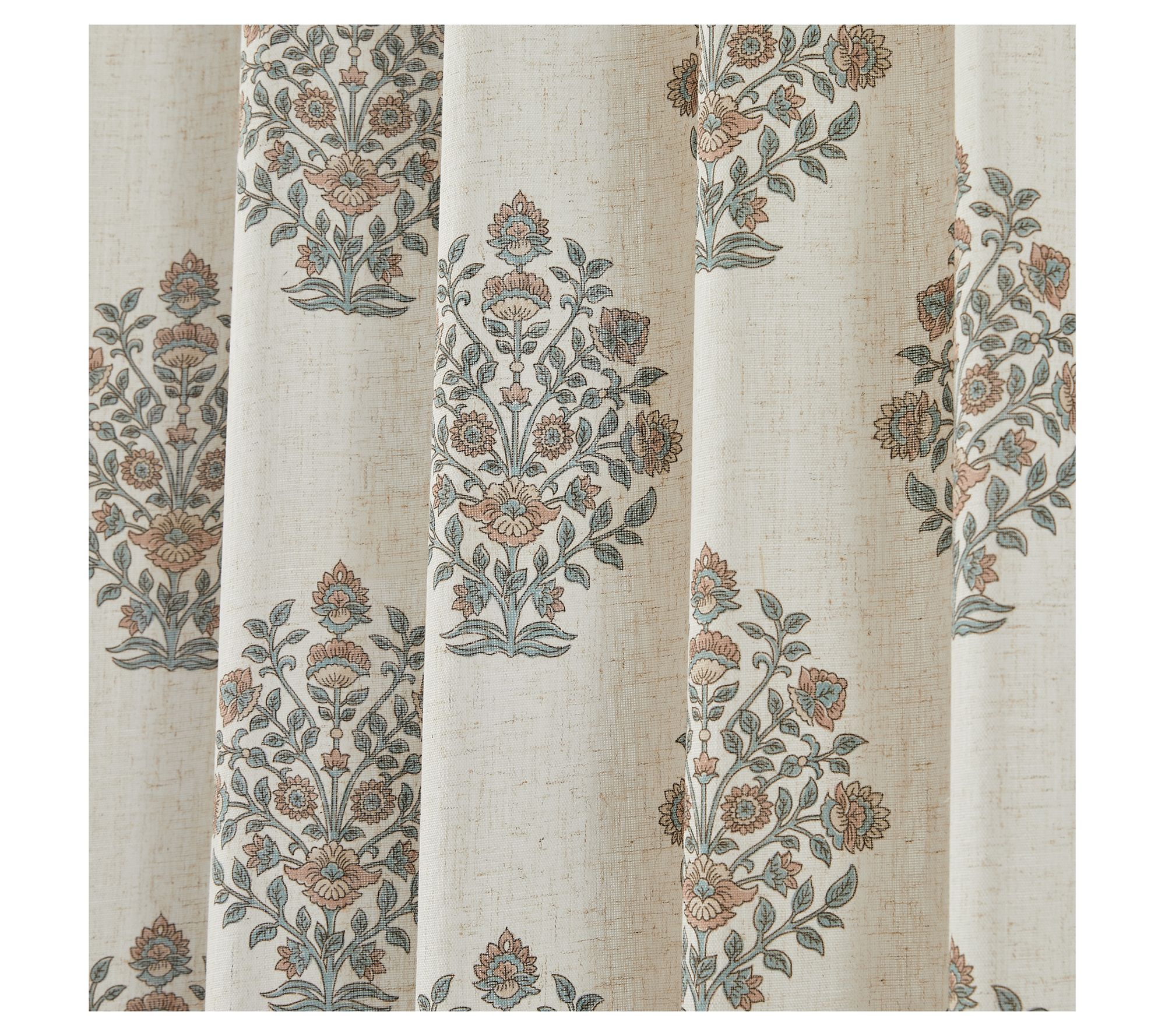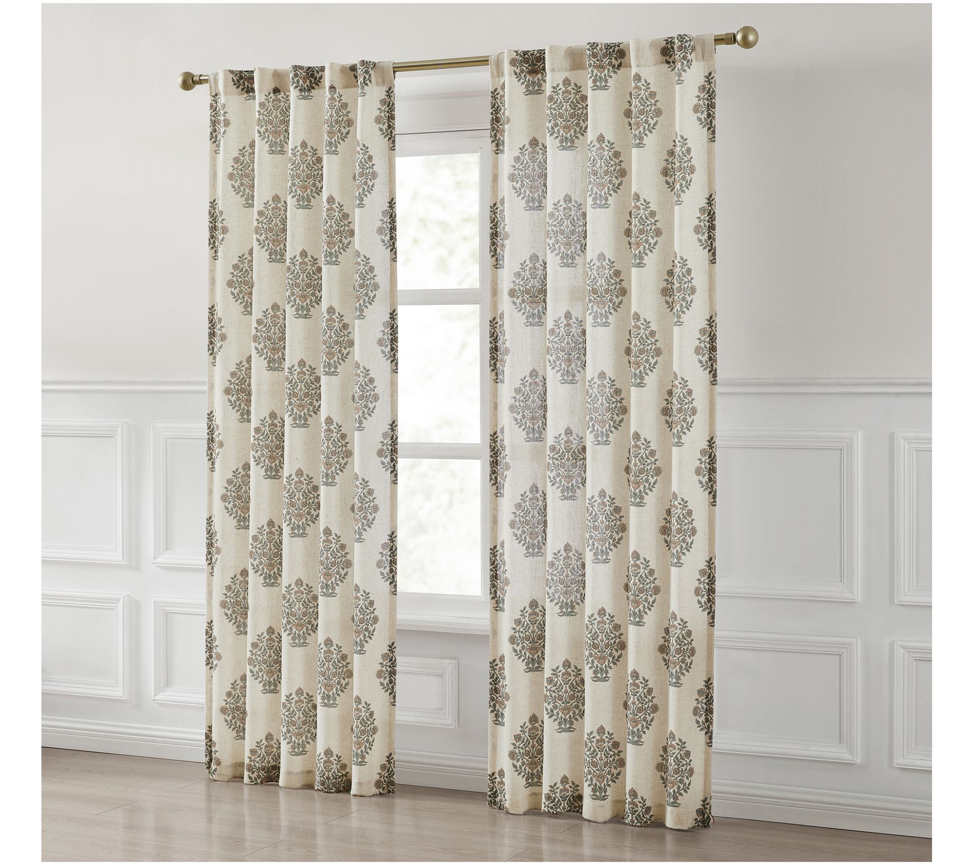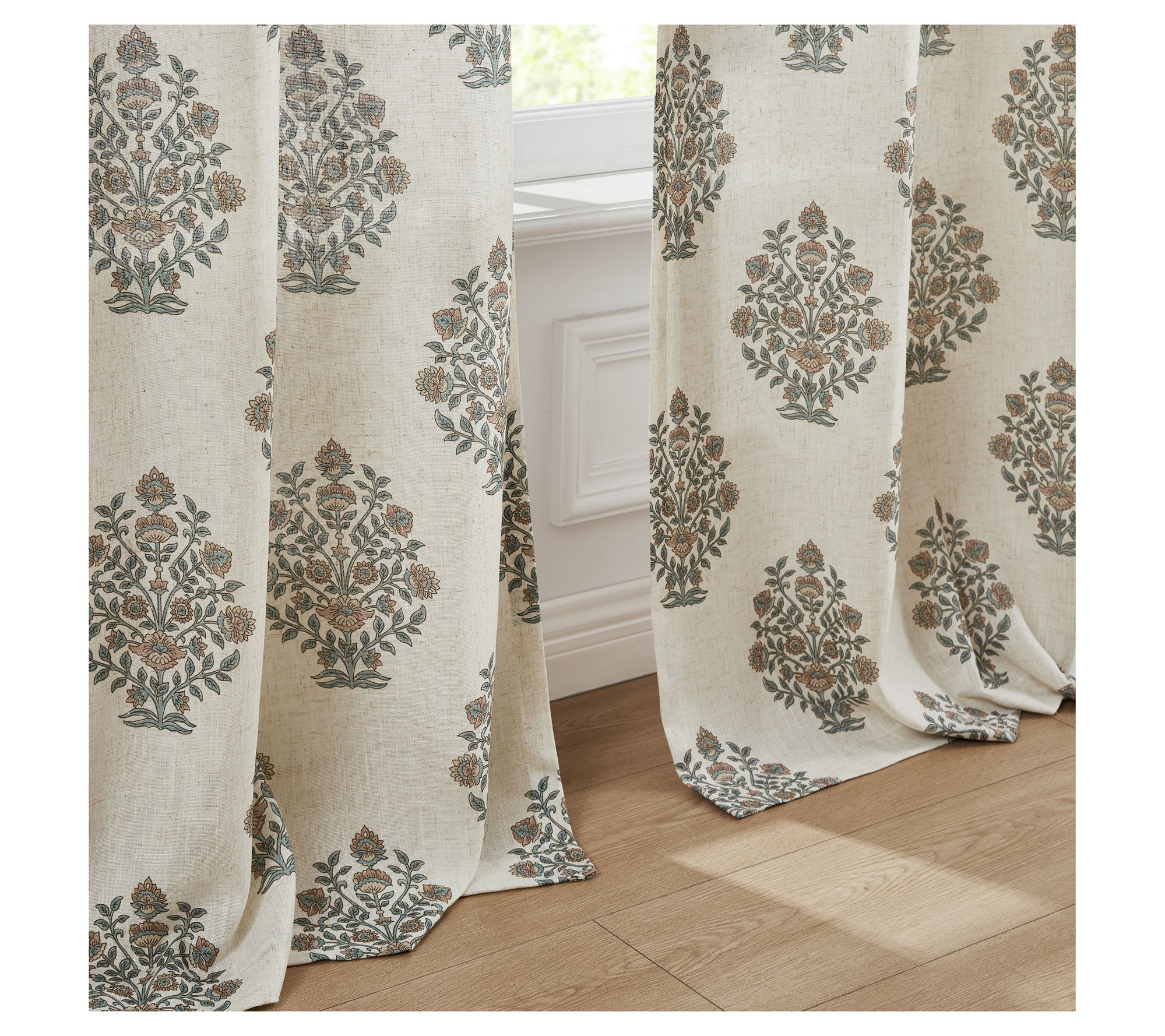 A touch of vintage elegance meets cozy boho style in these Sofia Flower Linen Textured window curtains. Soft pastel florals and a classic block print create a light and uplifting atmosphere while the linen blend fabric offers gentle privacy, making them just right for bedrooms or living rooms that crave both charm and light. From Lush Decor.