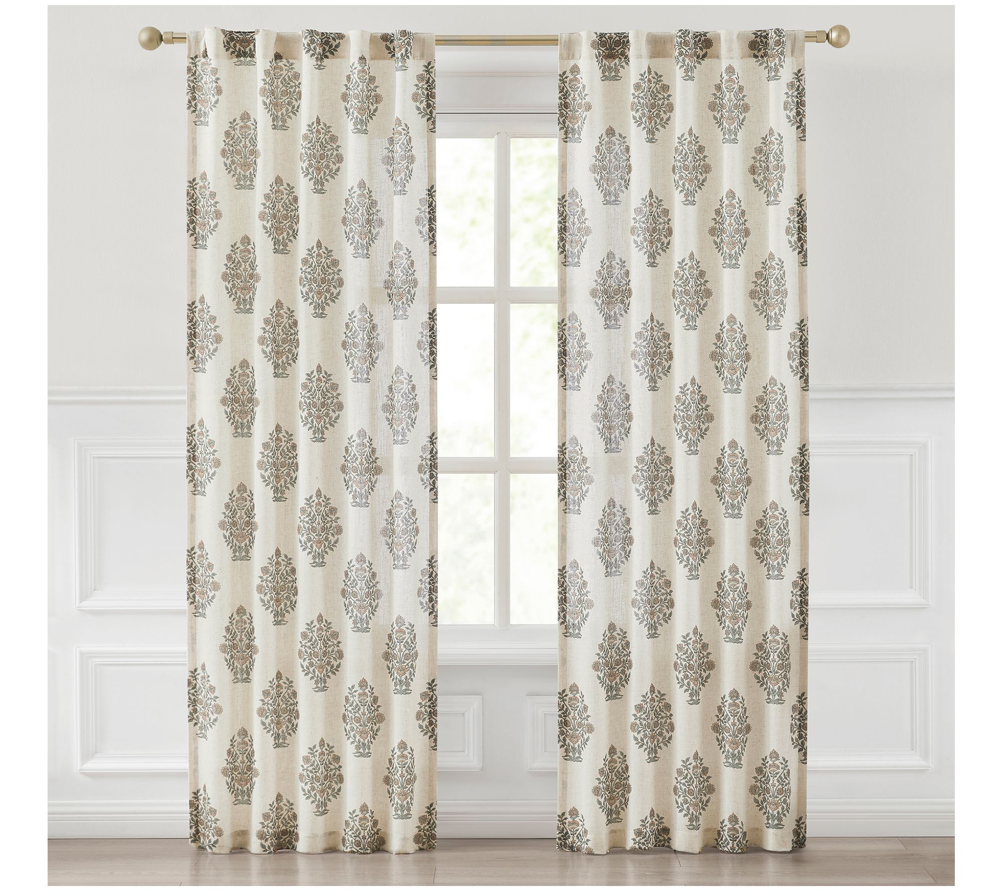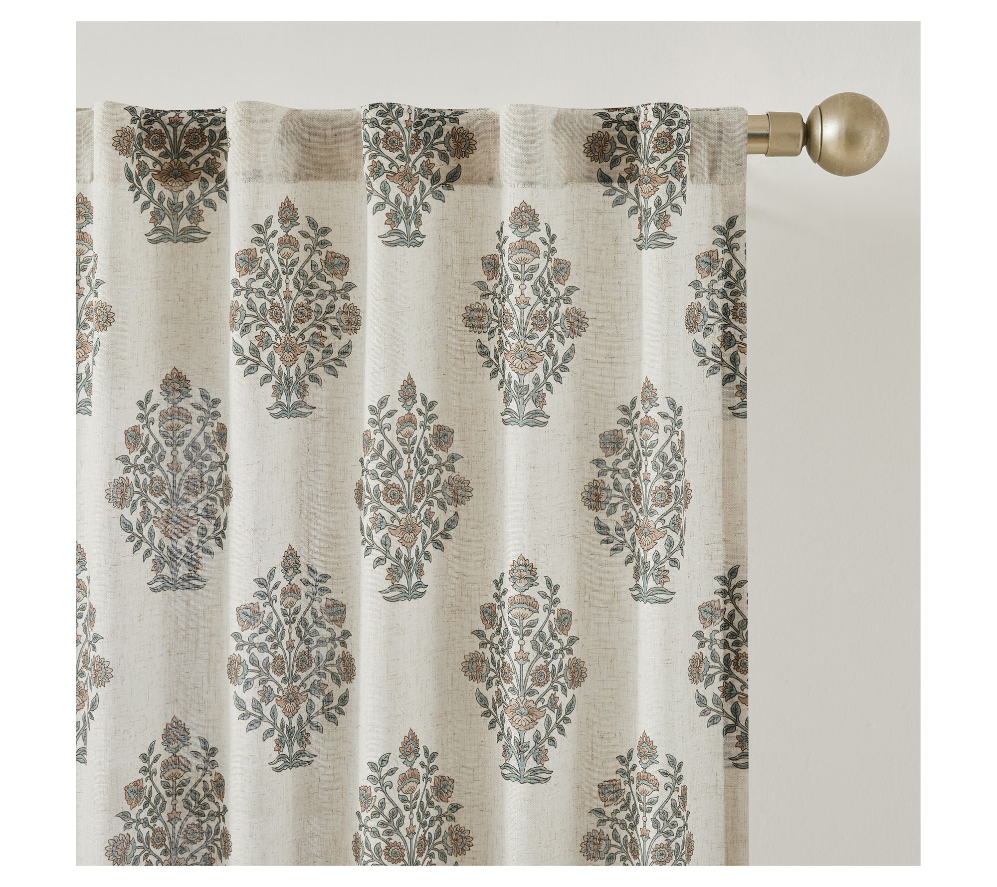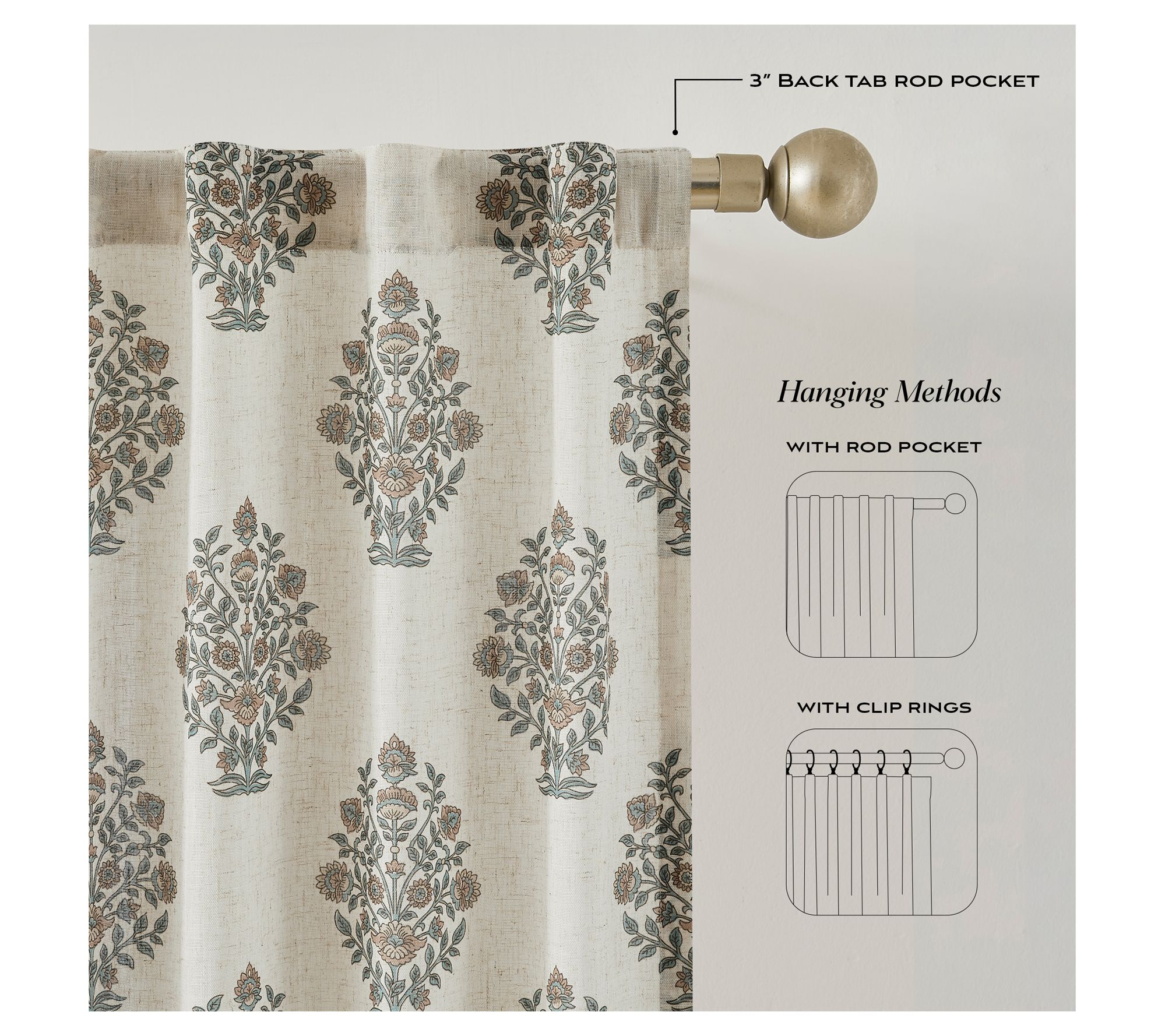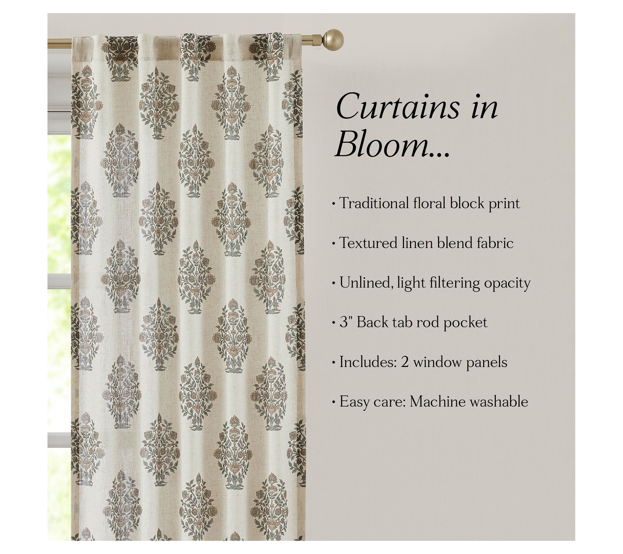 A touch of vintage elegance meets cozy boho style in these Sofia Flower Linen Textured window curtains. Soft pastel florals and a classic block print create a light and uplifting atmosphere while the linen blend fabric offers gentle privacy, making them just right for bedrooms or living rooms that crave both charm and light. From Lush Decor.