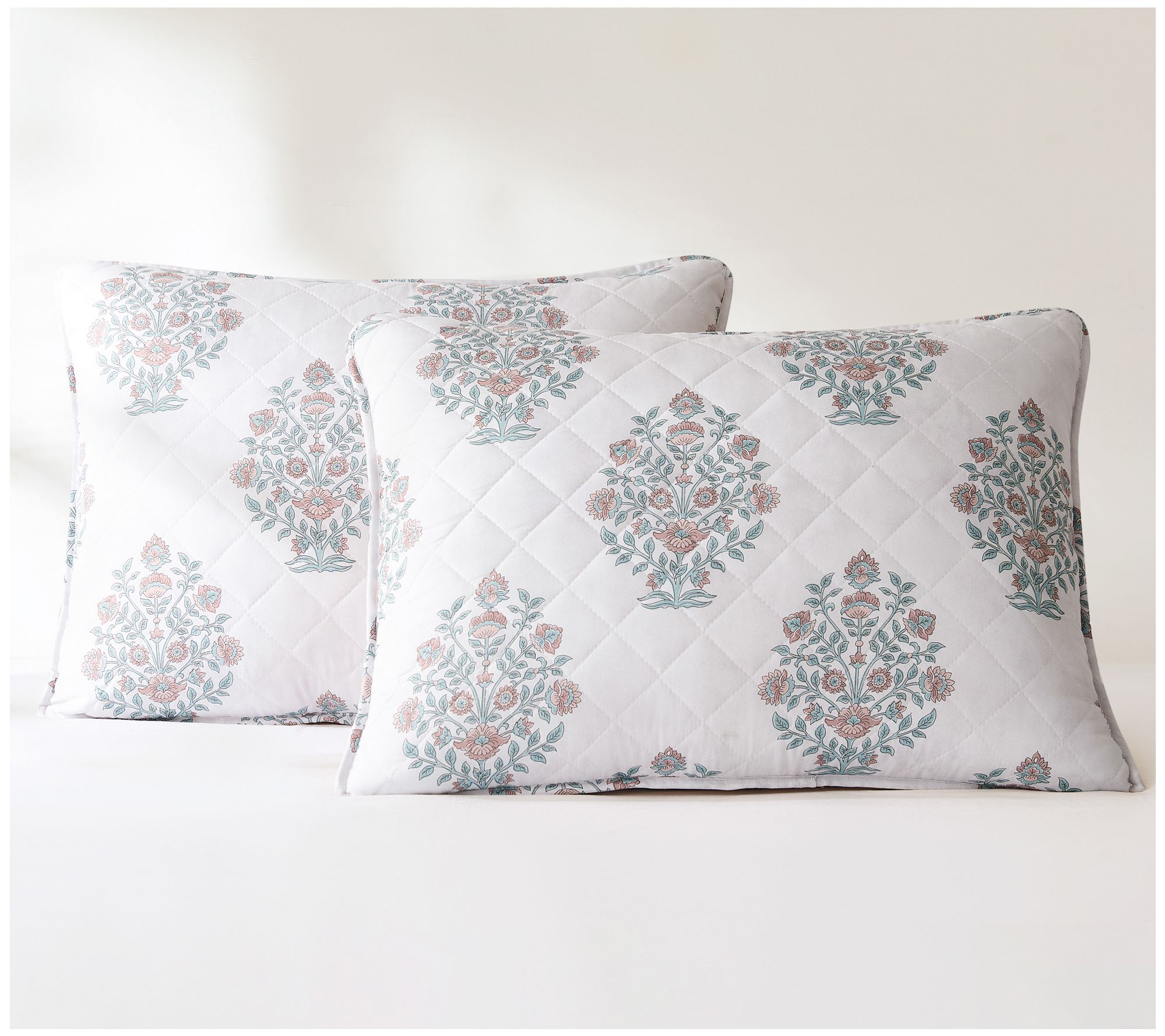 • Reversible design with flower bouquet and block prints