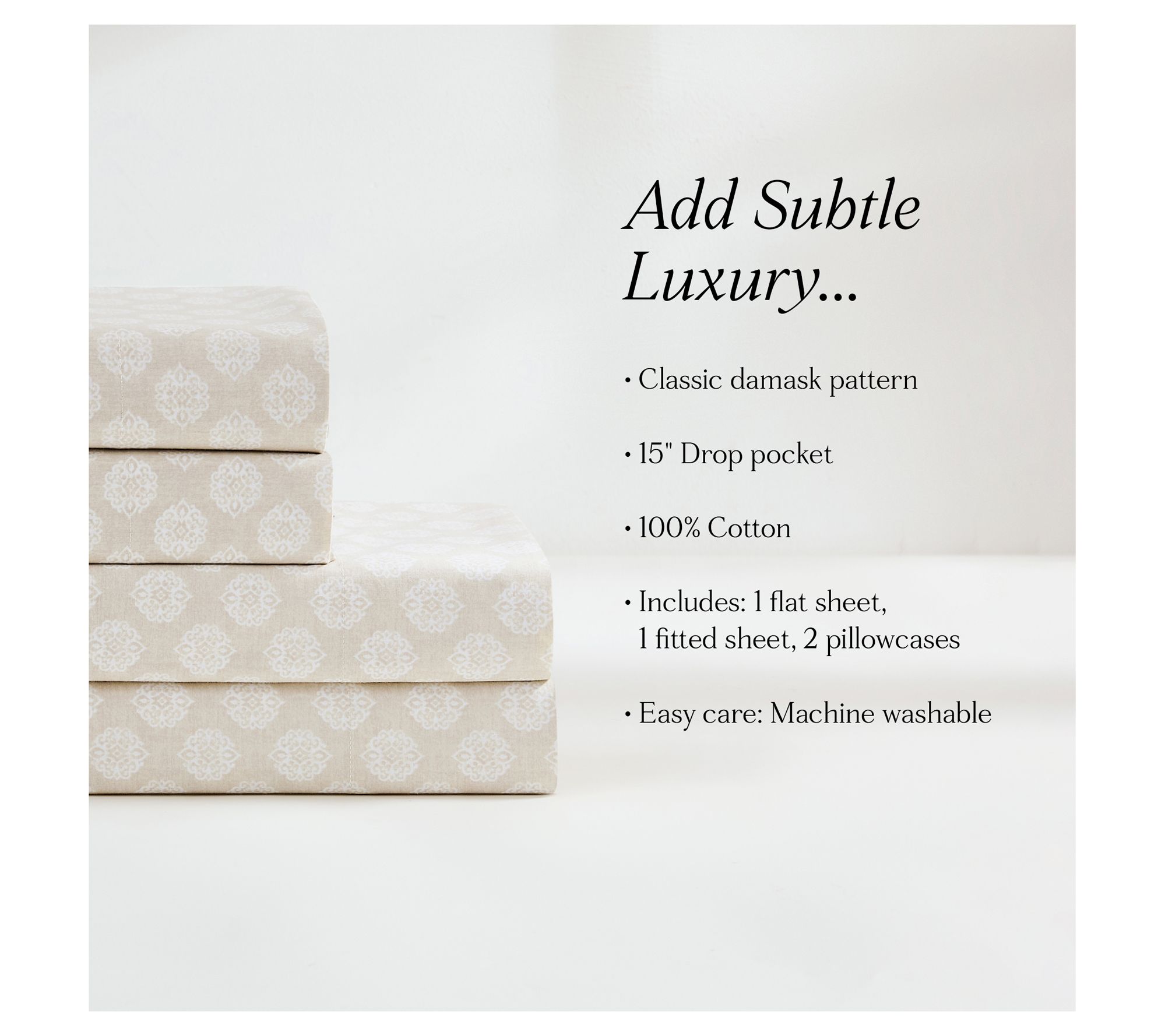 • Features classic damask pattern to add subtle elegance