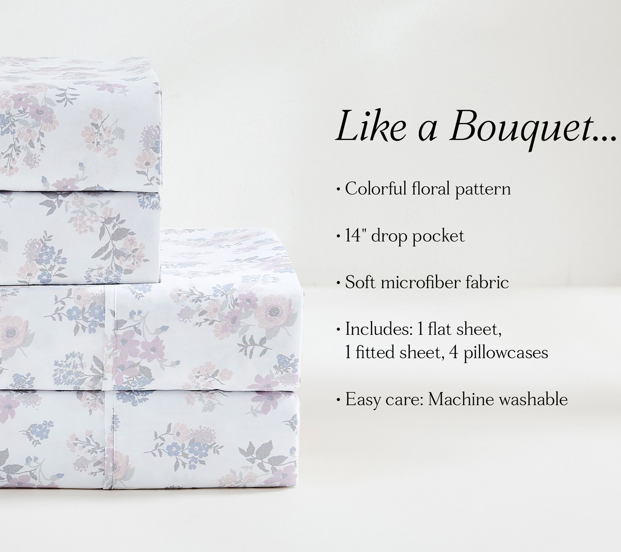 • Includes one flat sheet, one fitted sheet, and four pillowcases