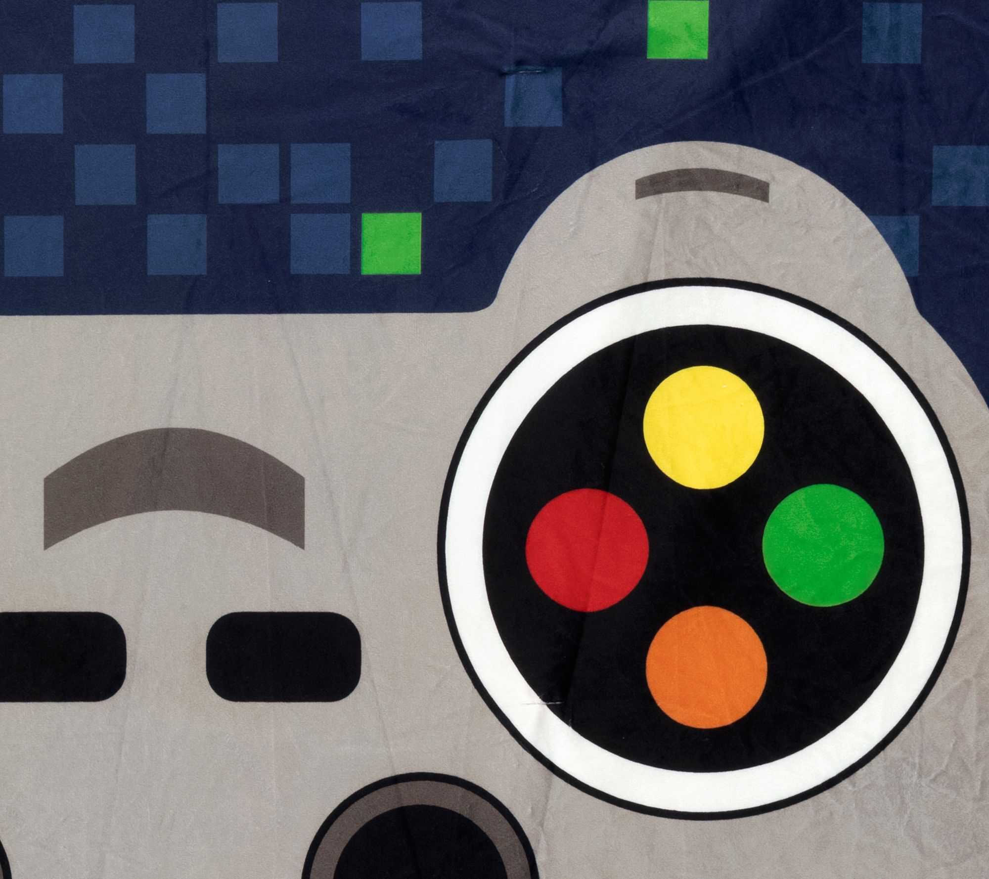 Warm up as you settle in for the evening all wrapped up in this cozy throw decorated in a retro video game motif. From Lush Decor.