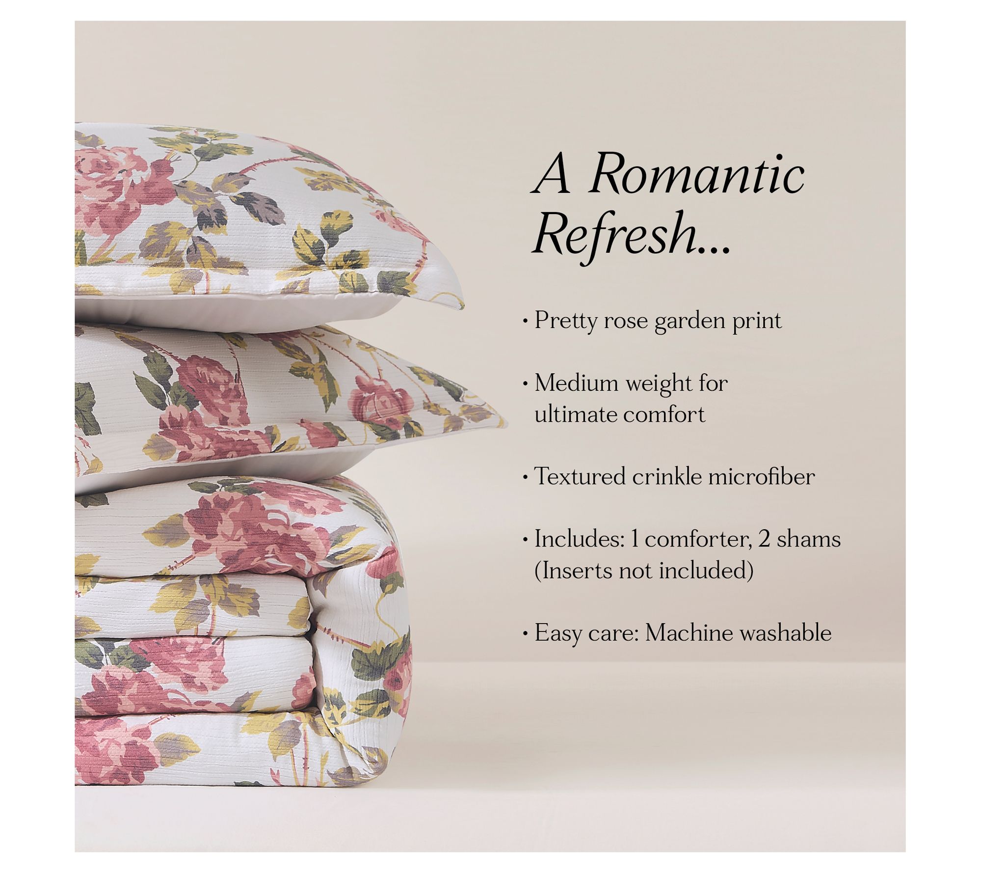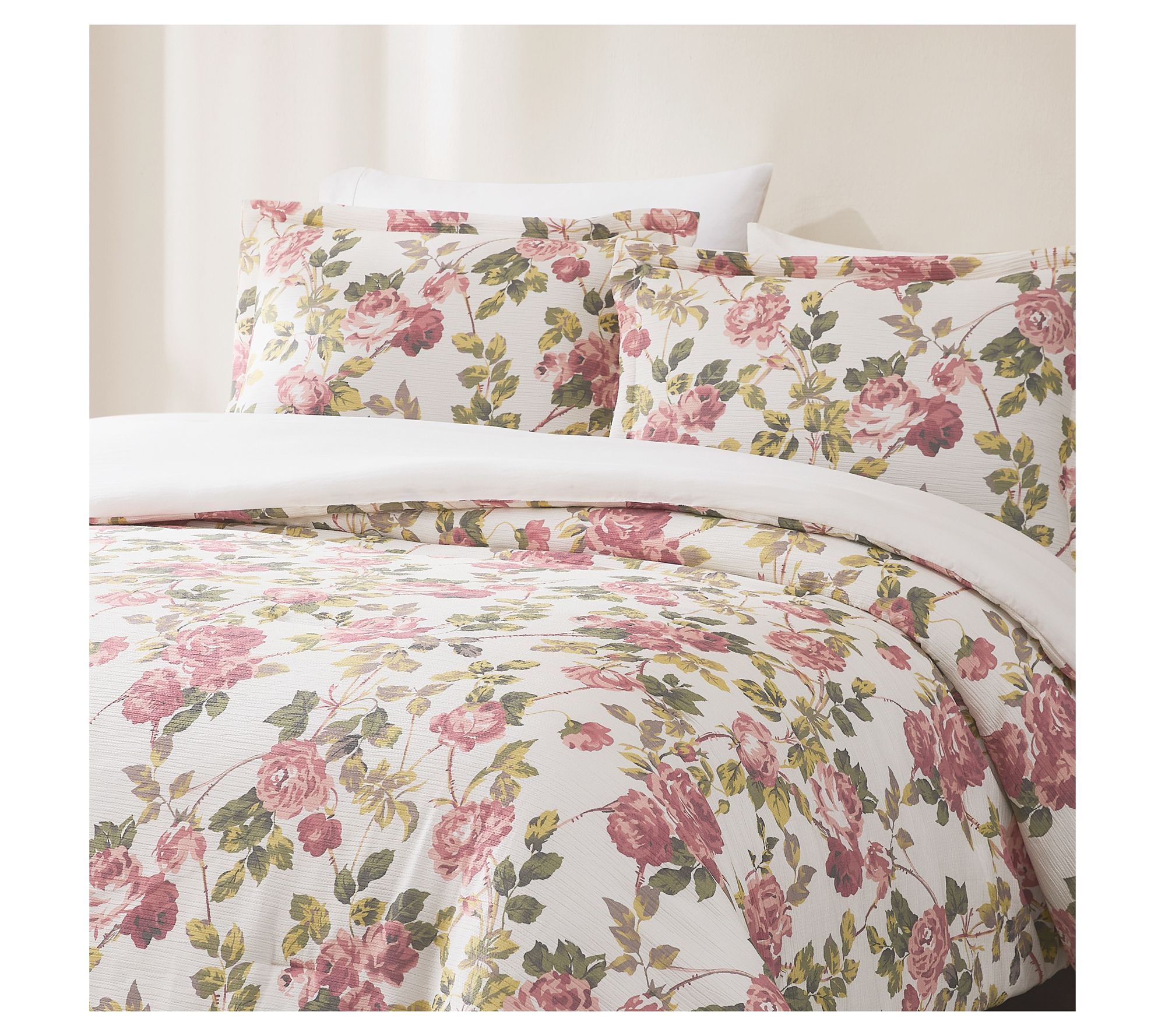 Transform your bedroom into a serene retreat with this vintage rose comforter set, featuring delicate floral prints in calming hues that inspire relaxation after a long day. The gentle crinkle texture and medium-weight down alternative fill create a plush, inviting layer, making it easy to unwind in coquette-inspired style. From Lush Decor.