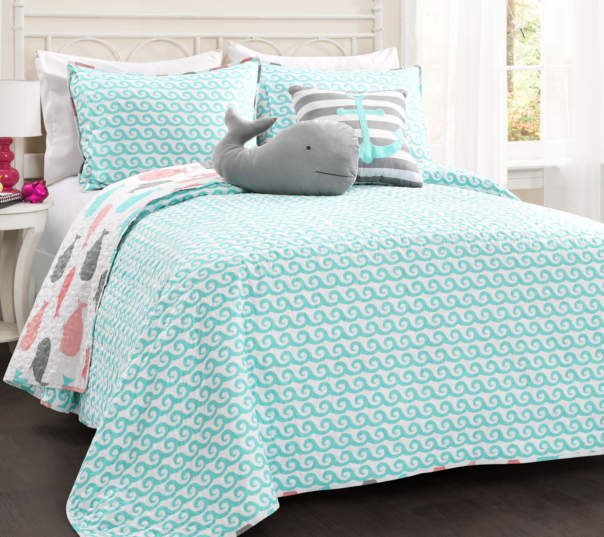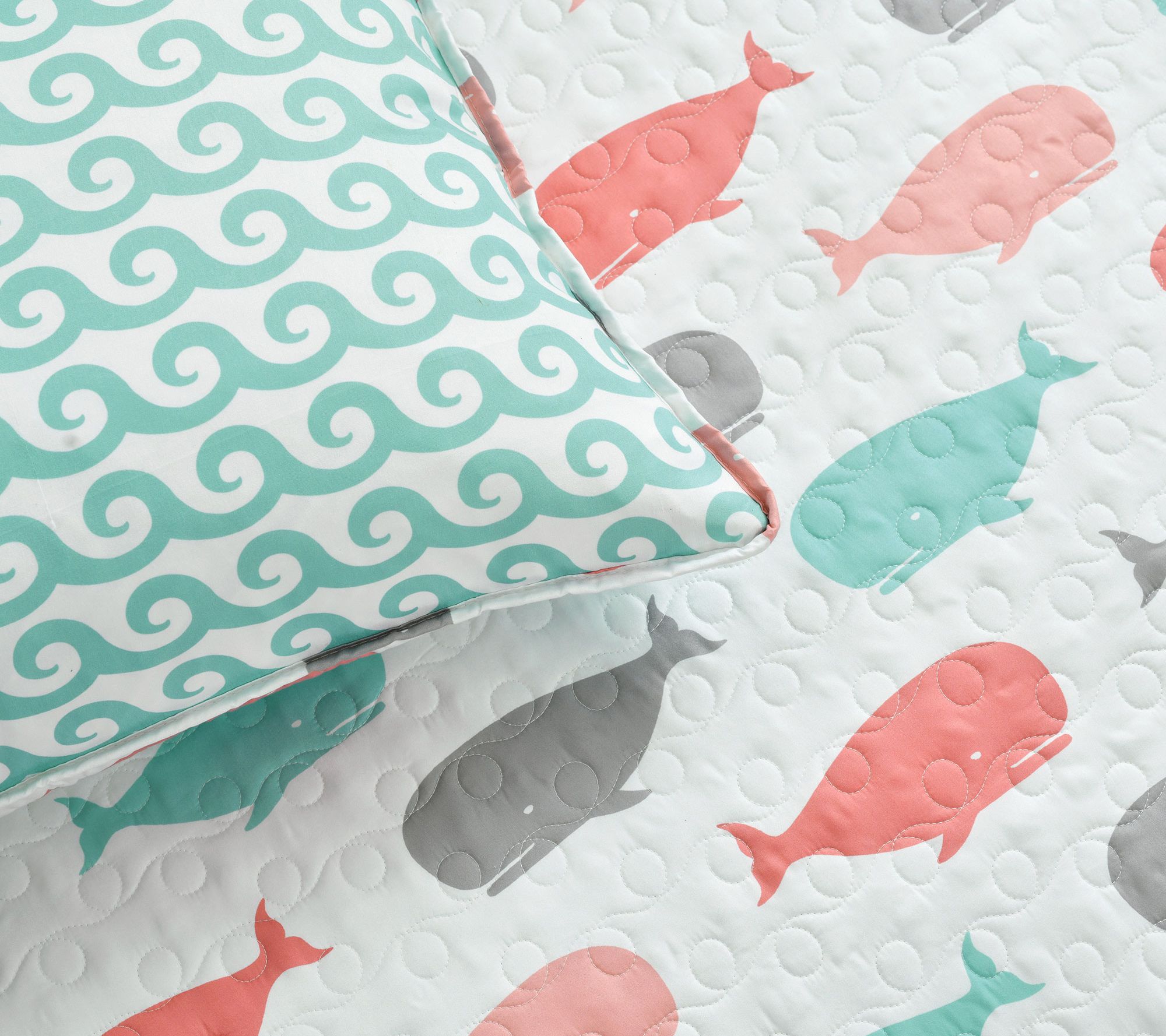 Whale, whale, whale...what do we have here? This fun and colorful quilt set brightens up any bedroom with vibrant ocean-inspired flair. From Lush Decor.