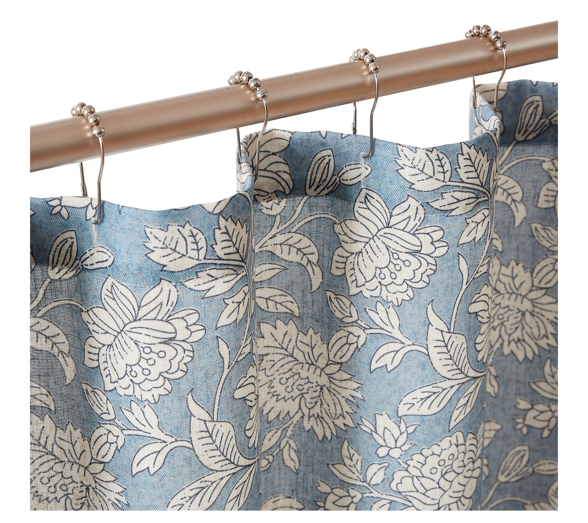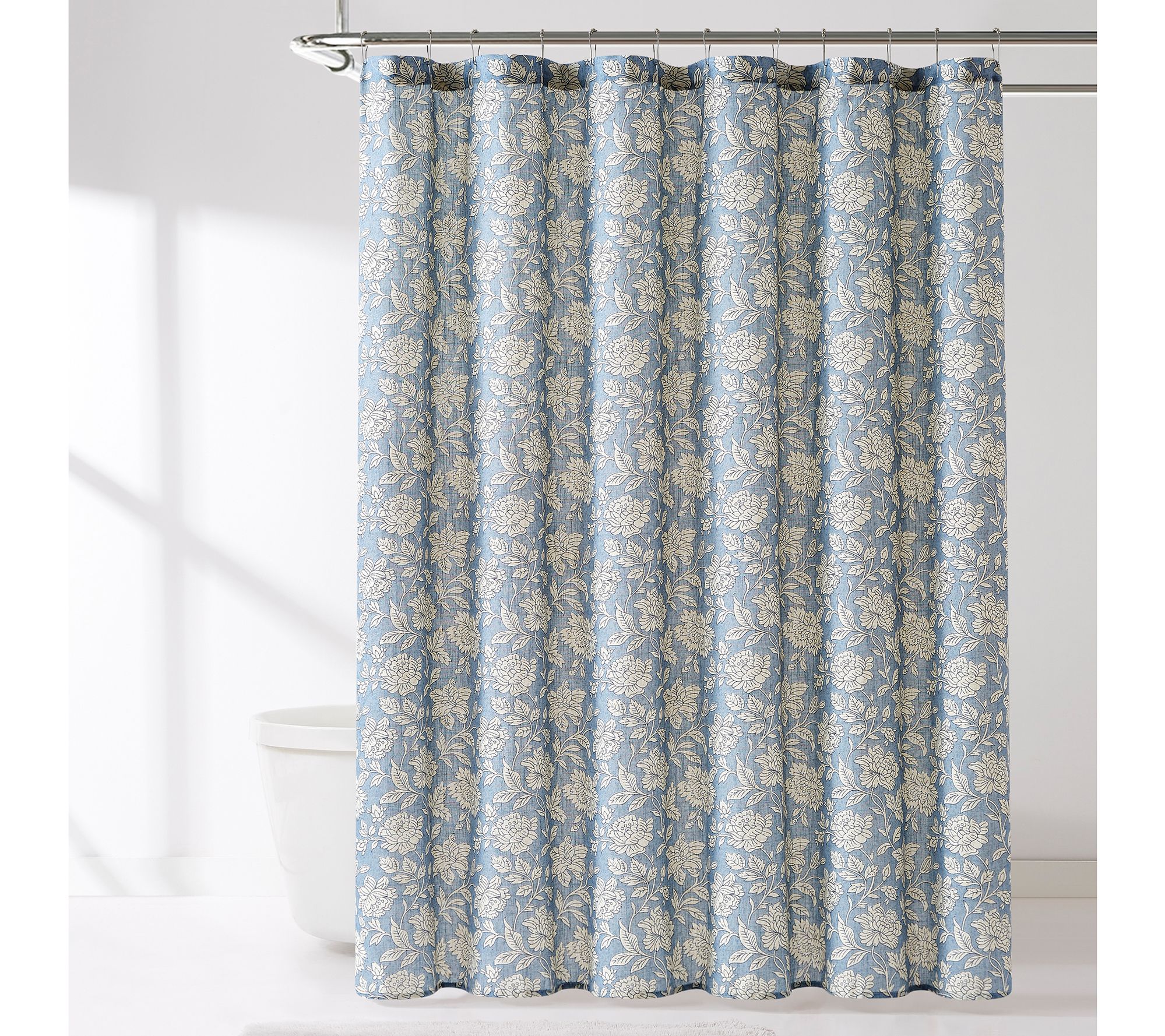 Classic floral prints come to life on this linen-textured shower curtain, adding soft color and inviting charm to your bathroom retreat. Easily hung with shower hooks or rings, the rich blend of fabrics and block print pattern offers a cozy touch that pairs well with vintage or coquette-inspired decor. From Lush Decor.