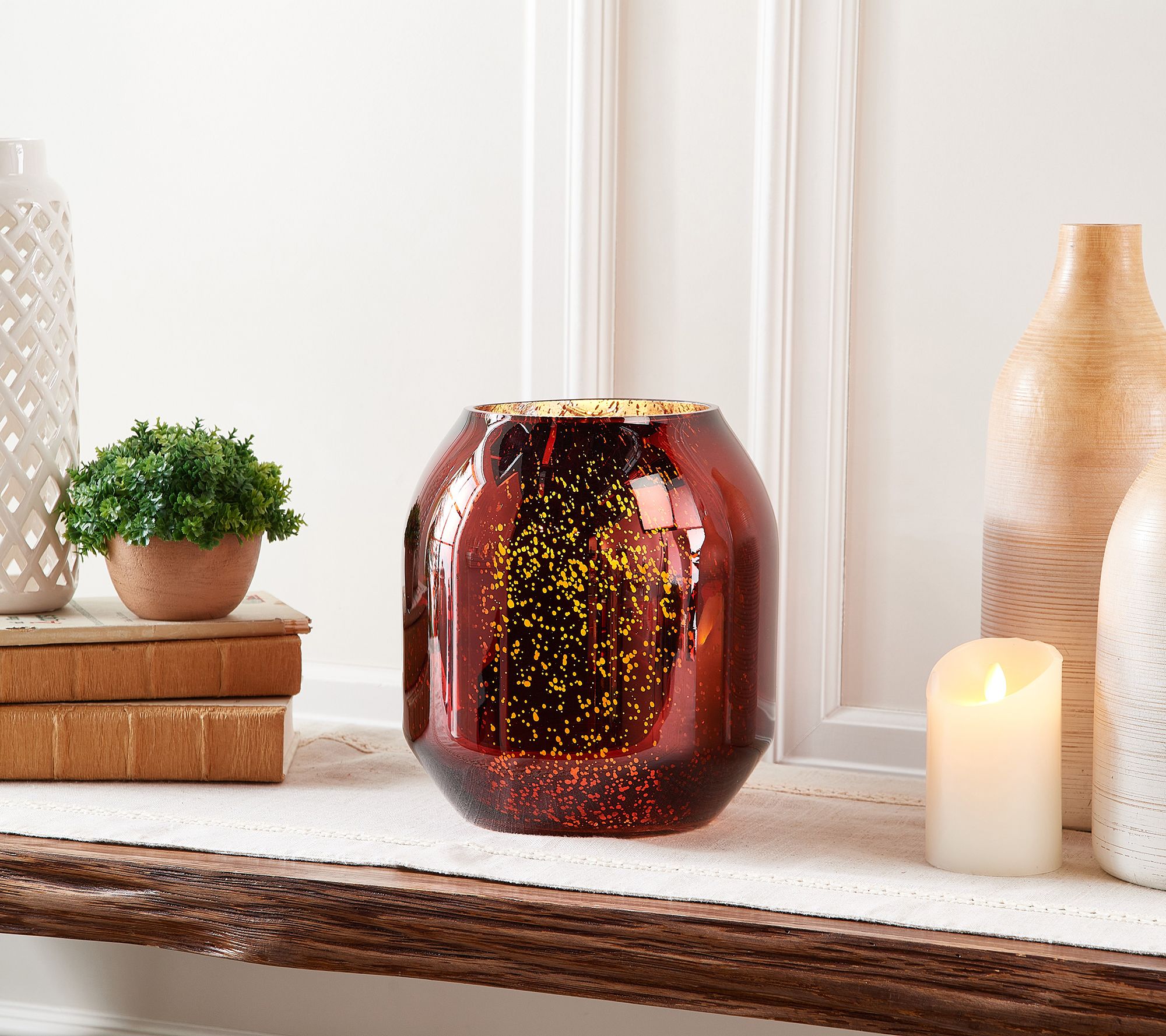 Luxe Rachel Zoe Large 9" Flameless Mercury Glass Hurricane