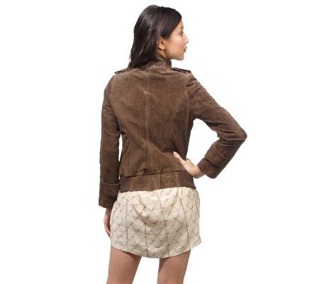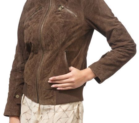 No biker babe ever looked this fab. Done in quilted suede, this biker jacket is fitted to flatter your figure. Four zip pockets on the front offer both functionality and style. From Rachel Zoe.