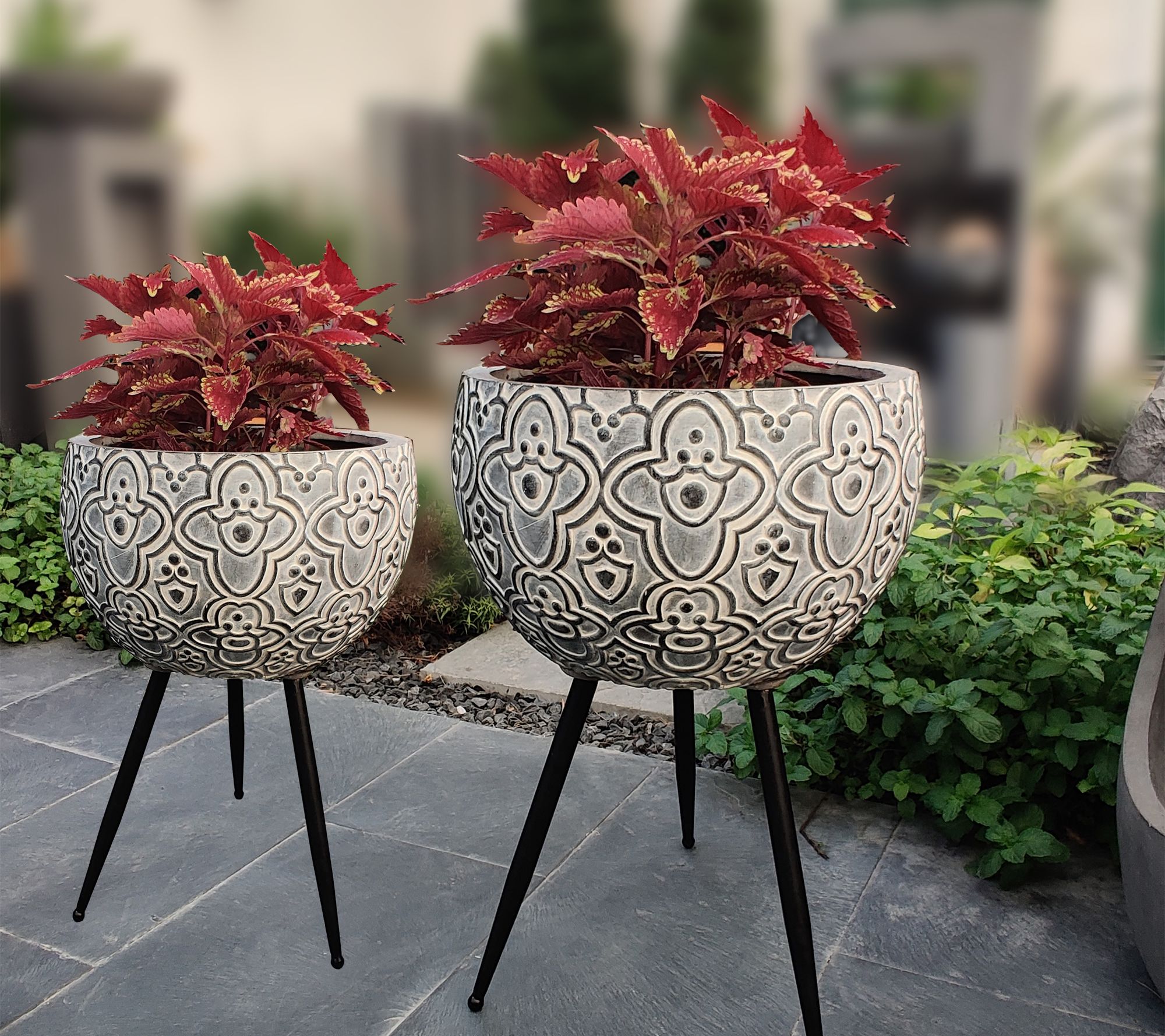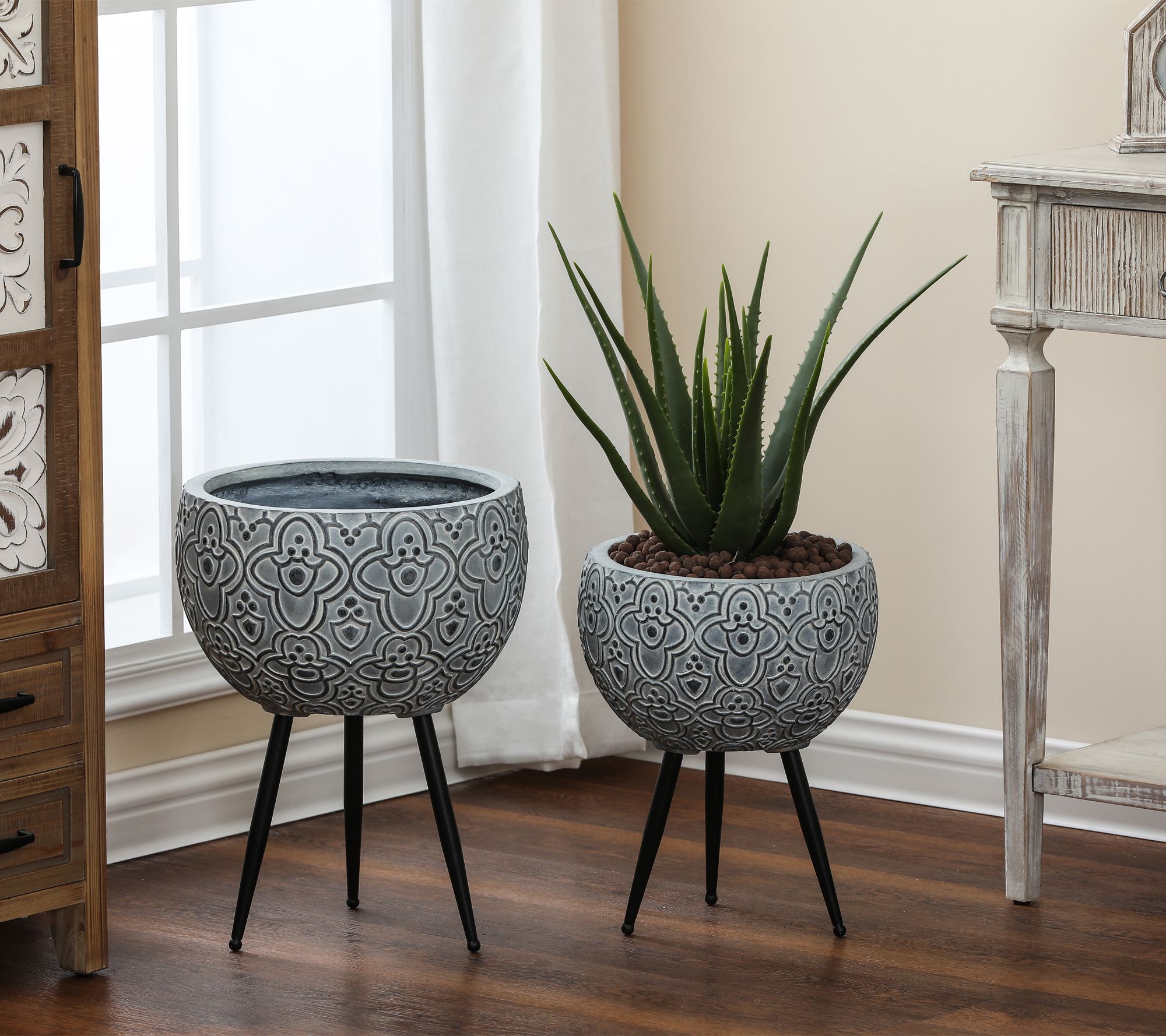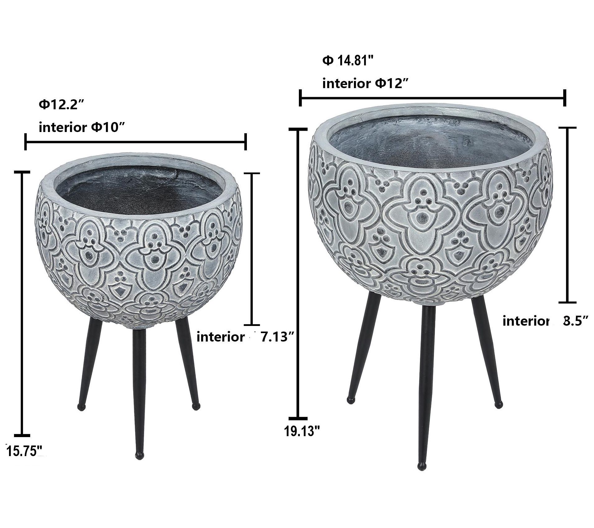 • Approximate measurements: Large planter 14.8"Diam x 19.13"H; Small planter 12.25" x 15.75"H