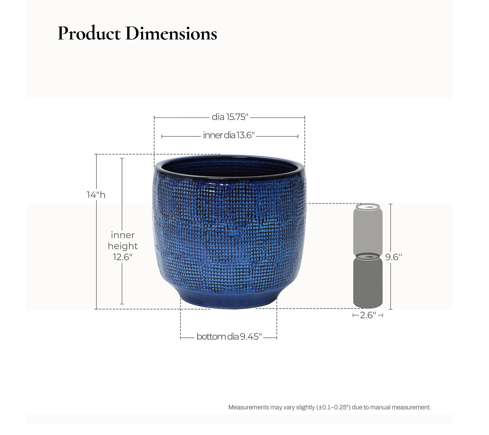 • Measures 14"H x 15.75"Diam