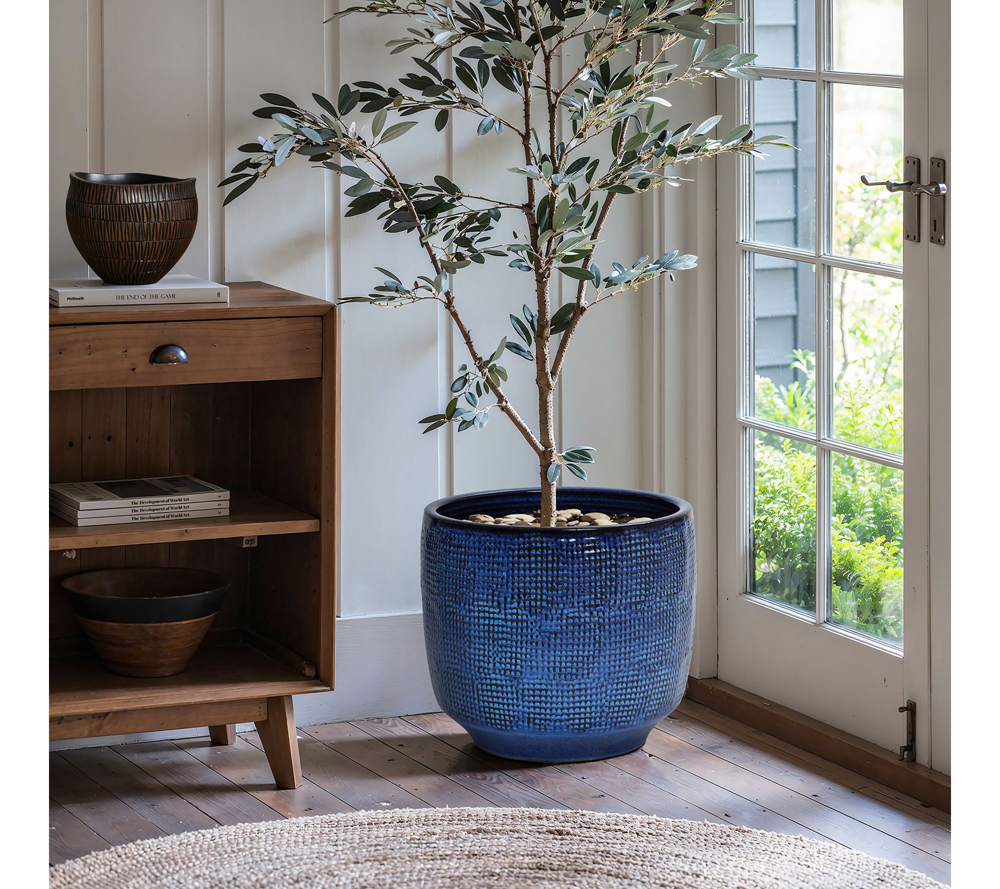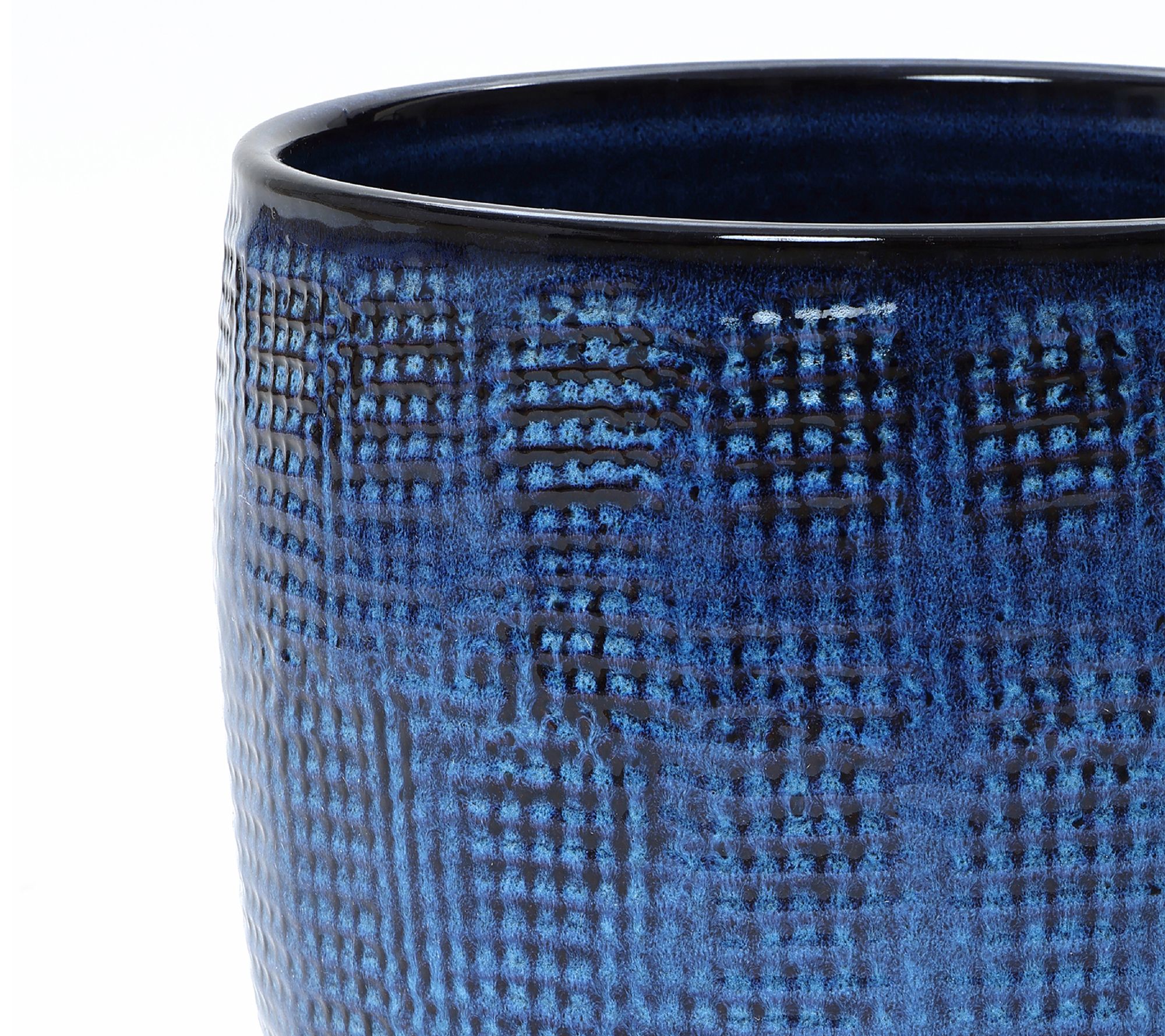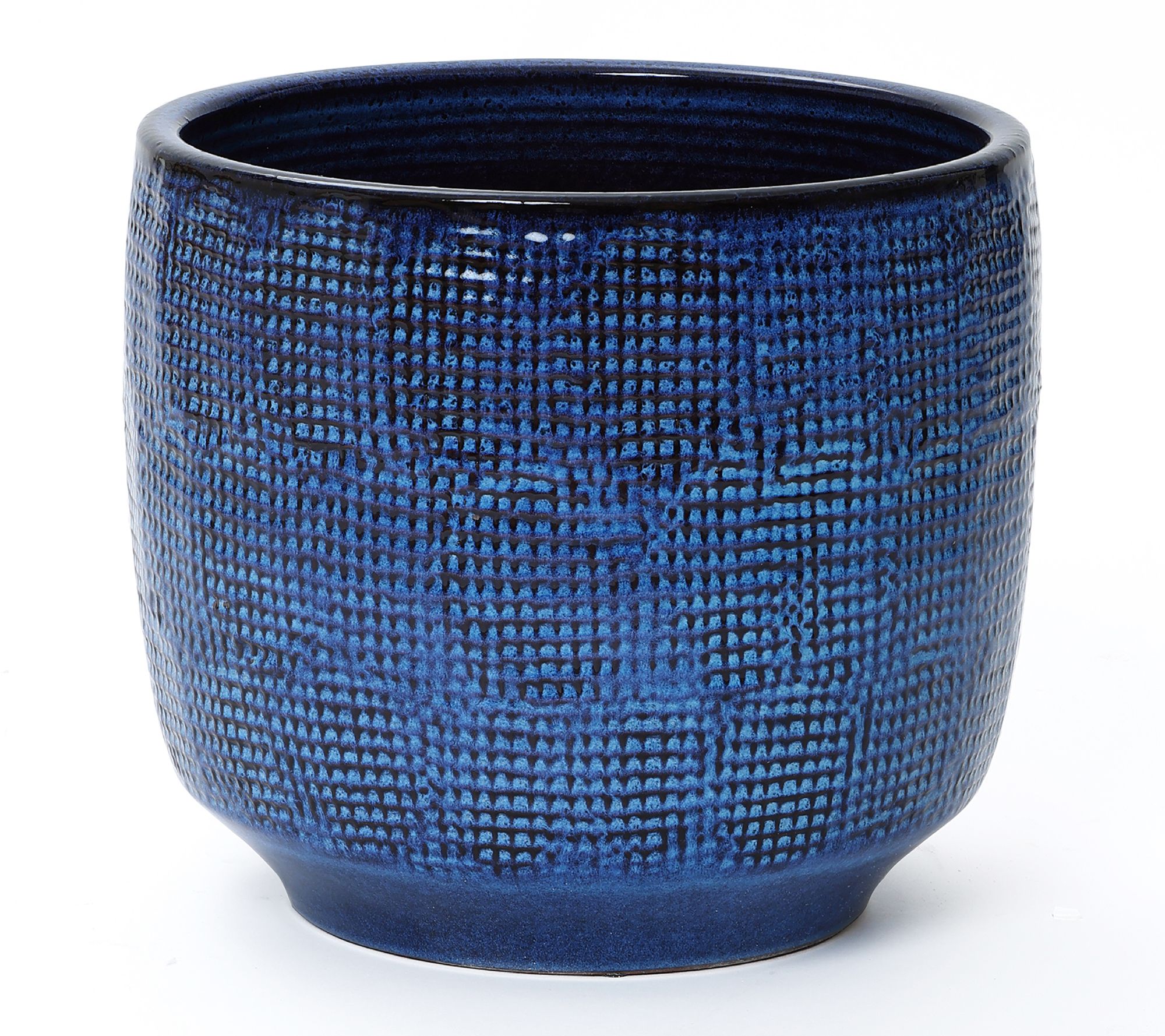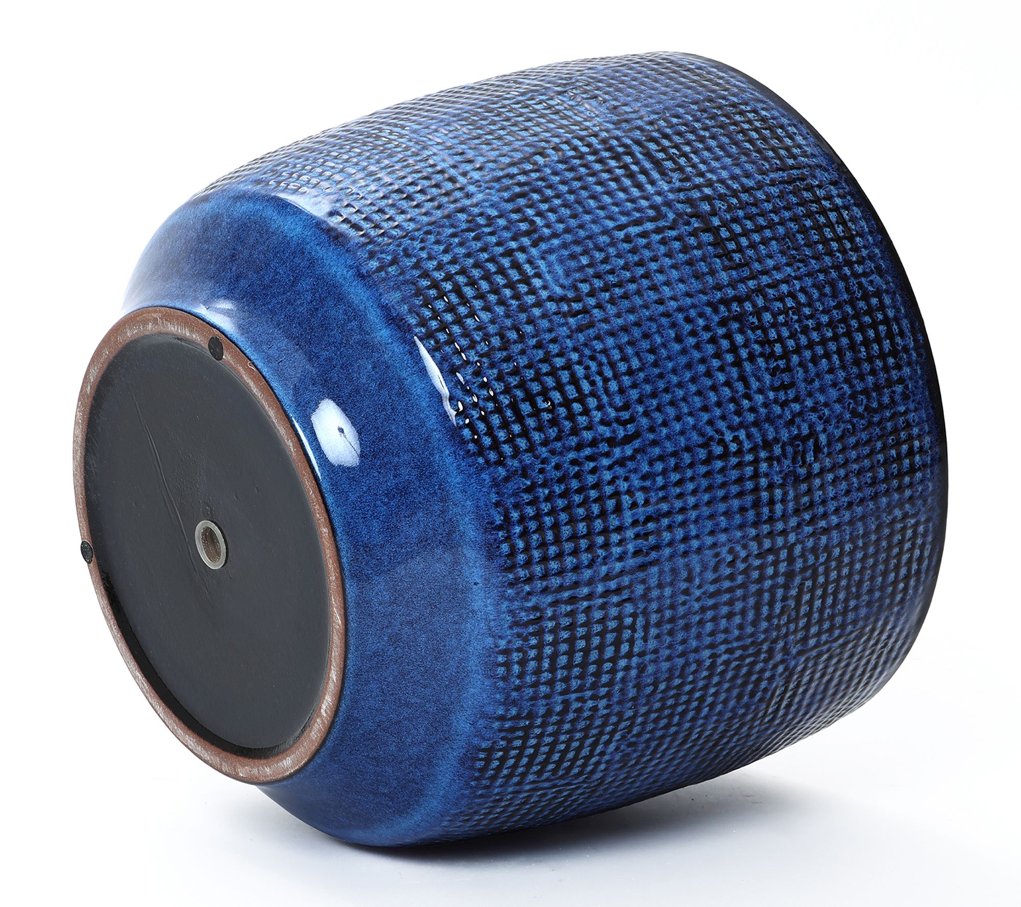 LuxenHome 15.75" Ceramic Planter, Textured DeepBlue Glaze