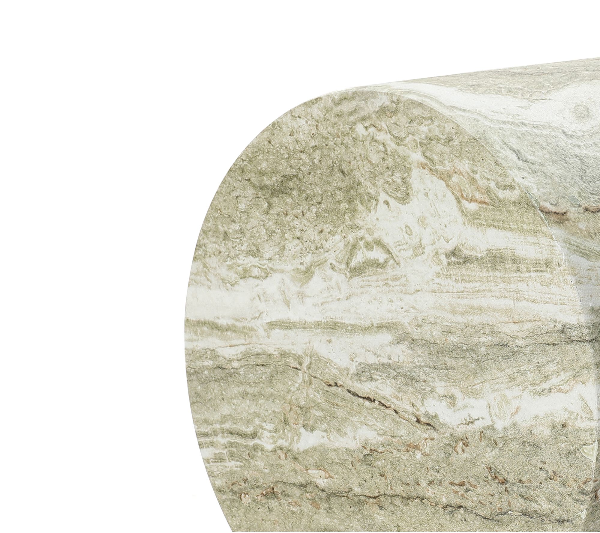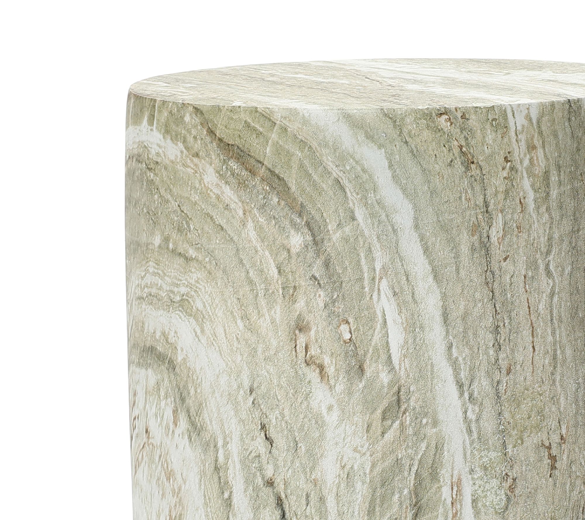 • Marbled green and white round patio side table crafted from magnesium oxide