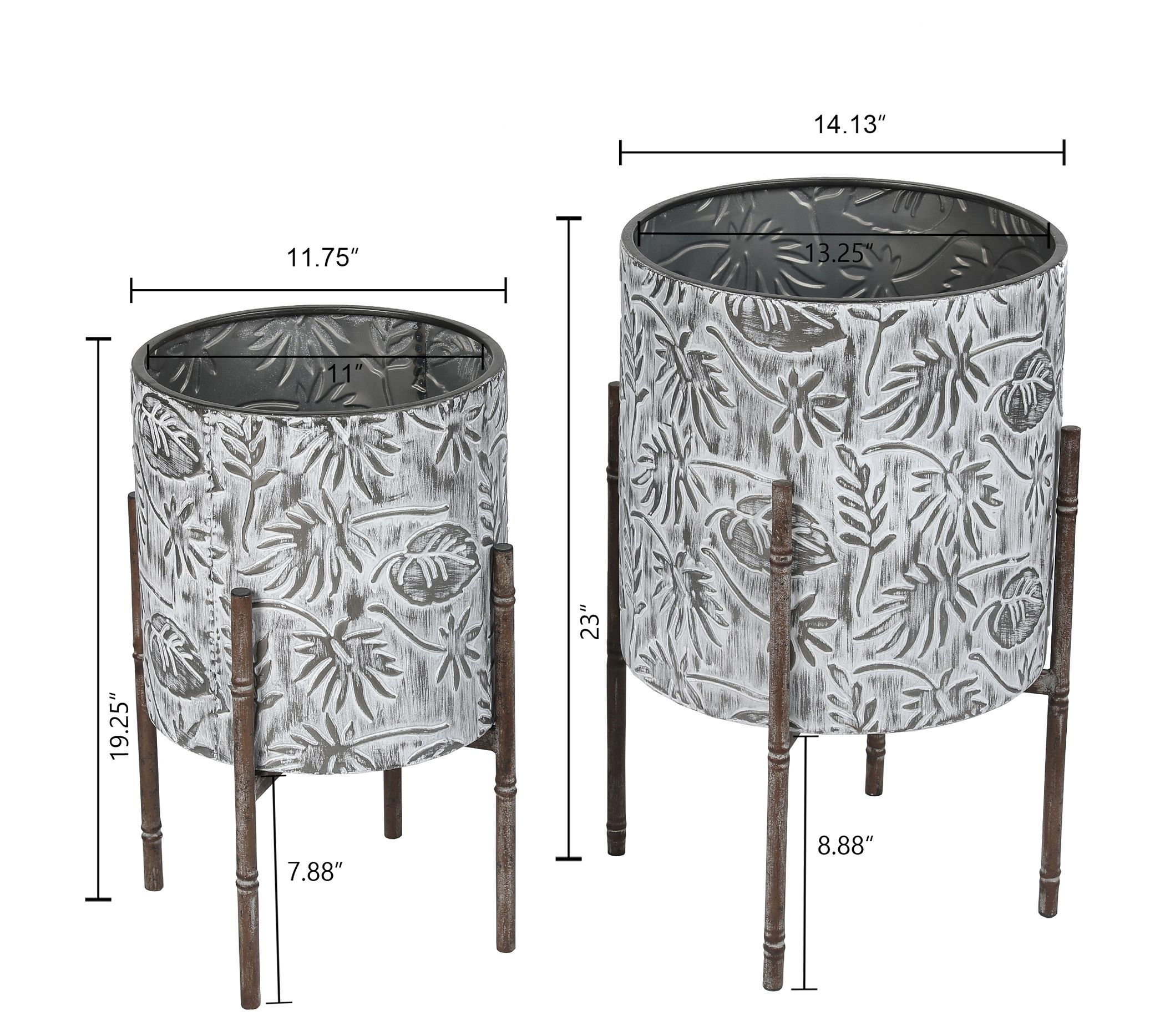 LuxenHome 2-pc White and Gray Metal Cachepots w ith Metal Stan