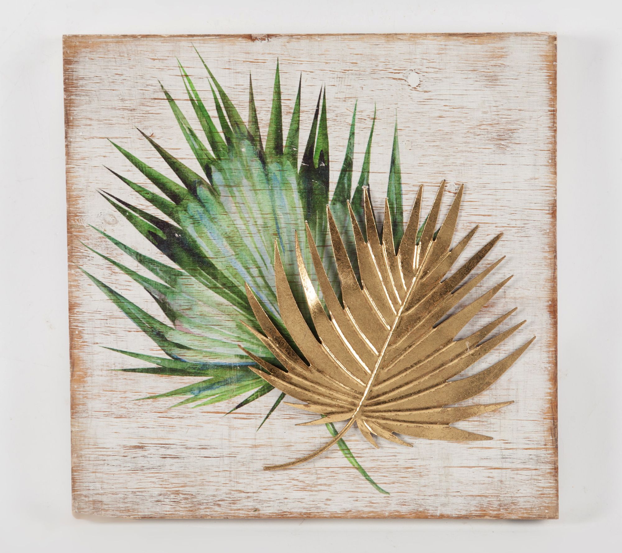 • Painted green palm leaves with goldtone metal leaf overlay