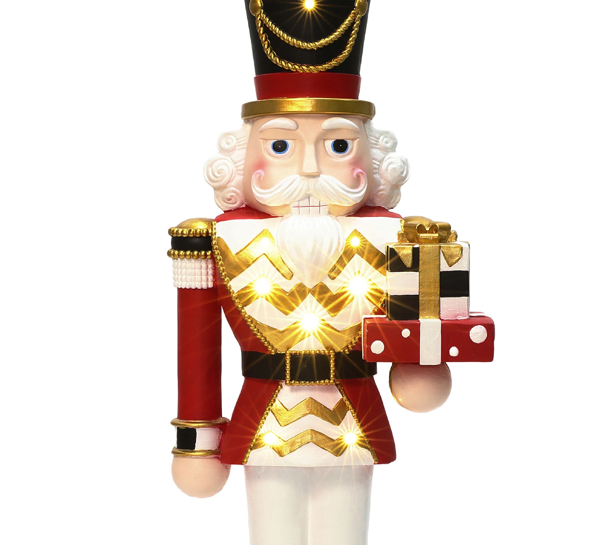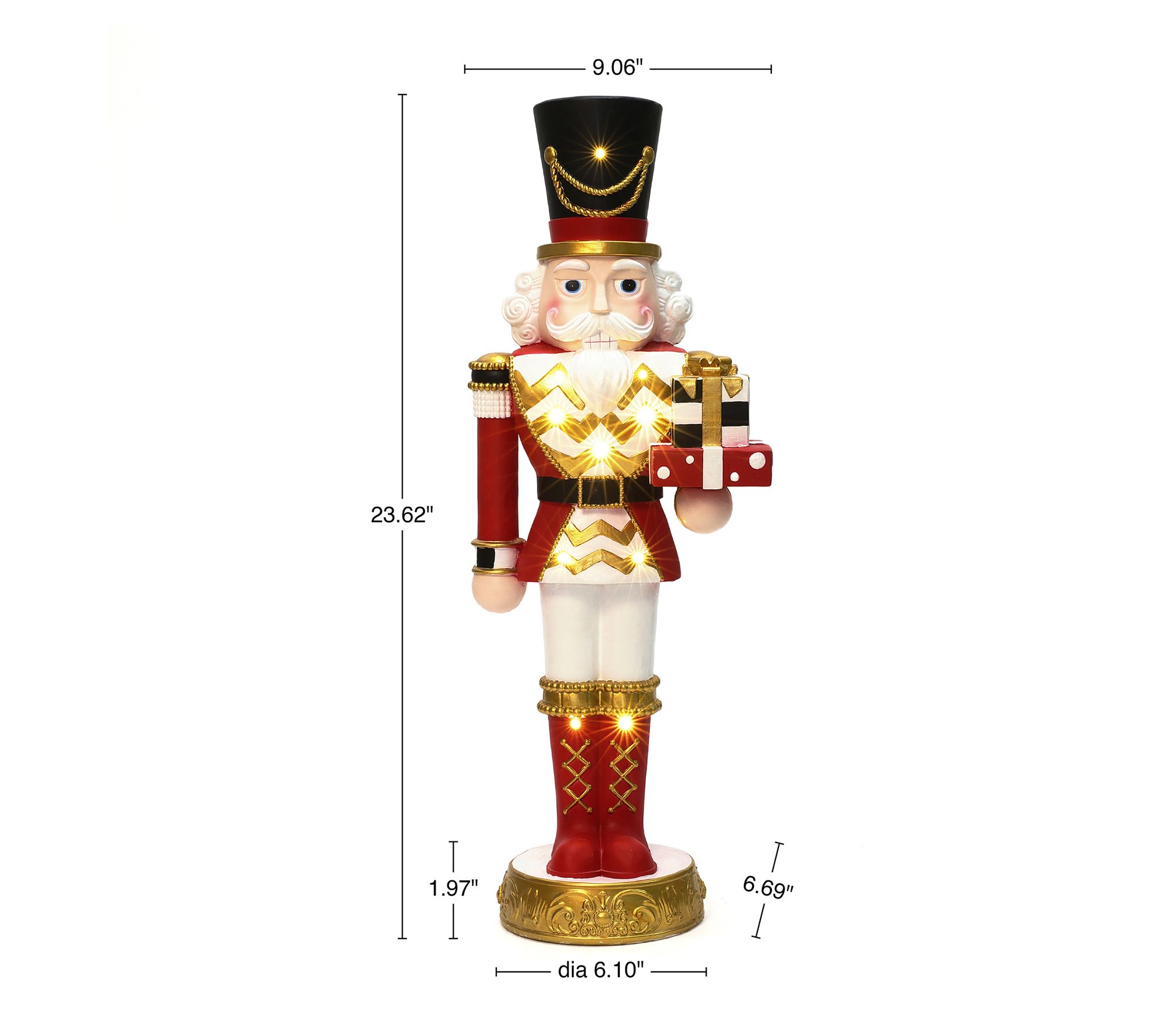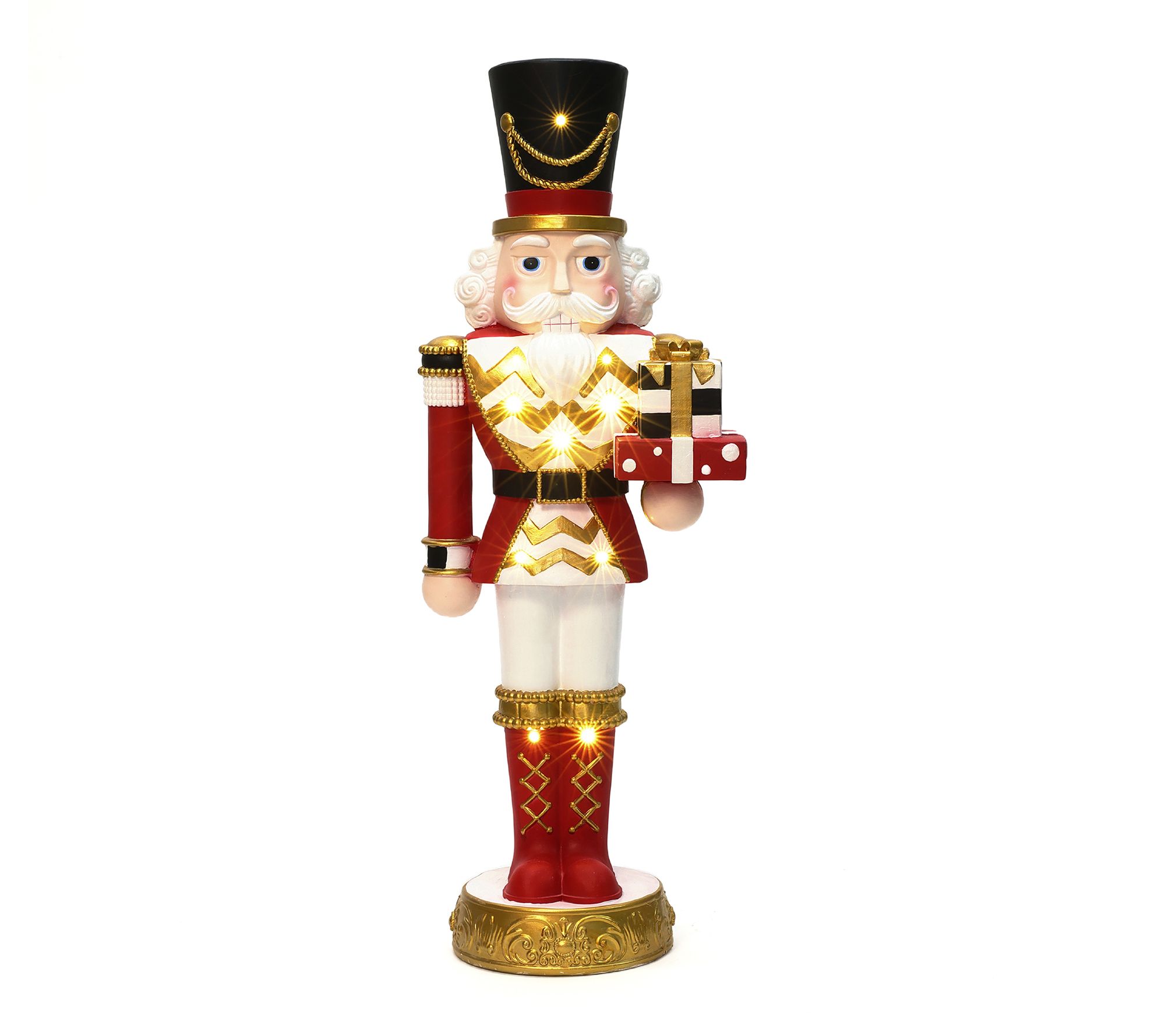 LuxenHome 2ft Lighted Red Nutcracker Soldier with Presents