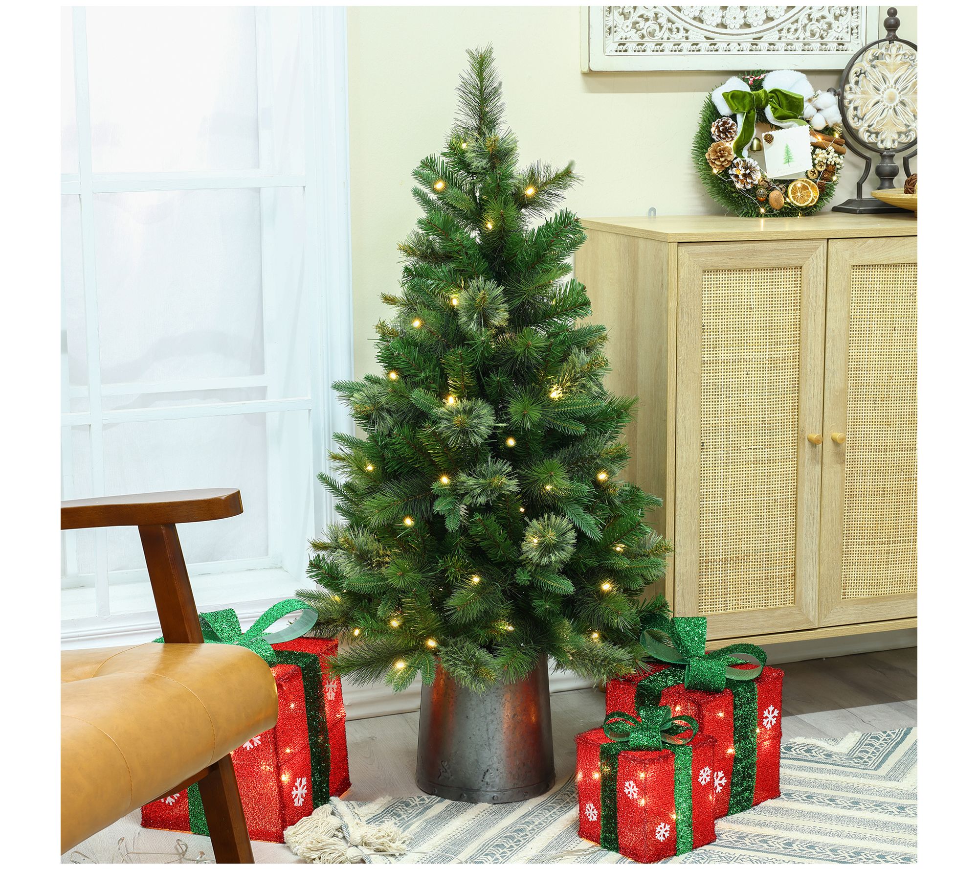 LuxenHome 4' Pre-Lit Artificial Christmas Pine Tree with Pot