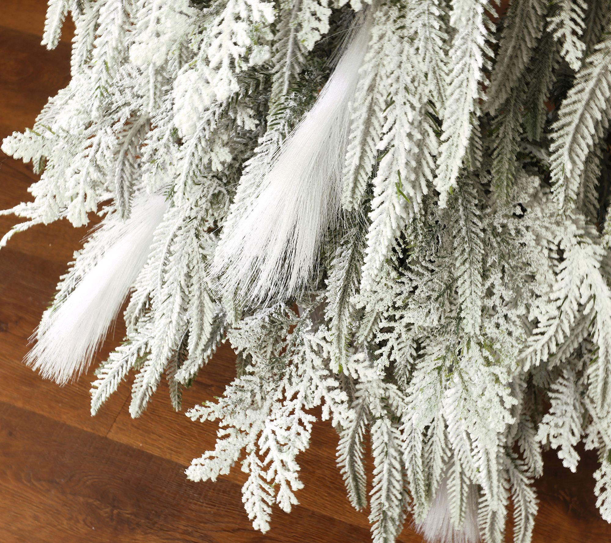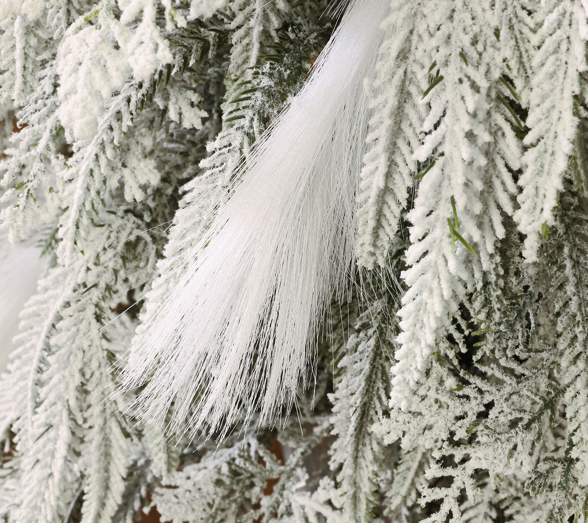 Snow-flocked PE branches with 141 tips and feather-like white strands