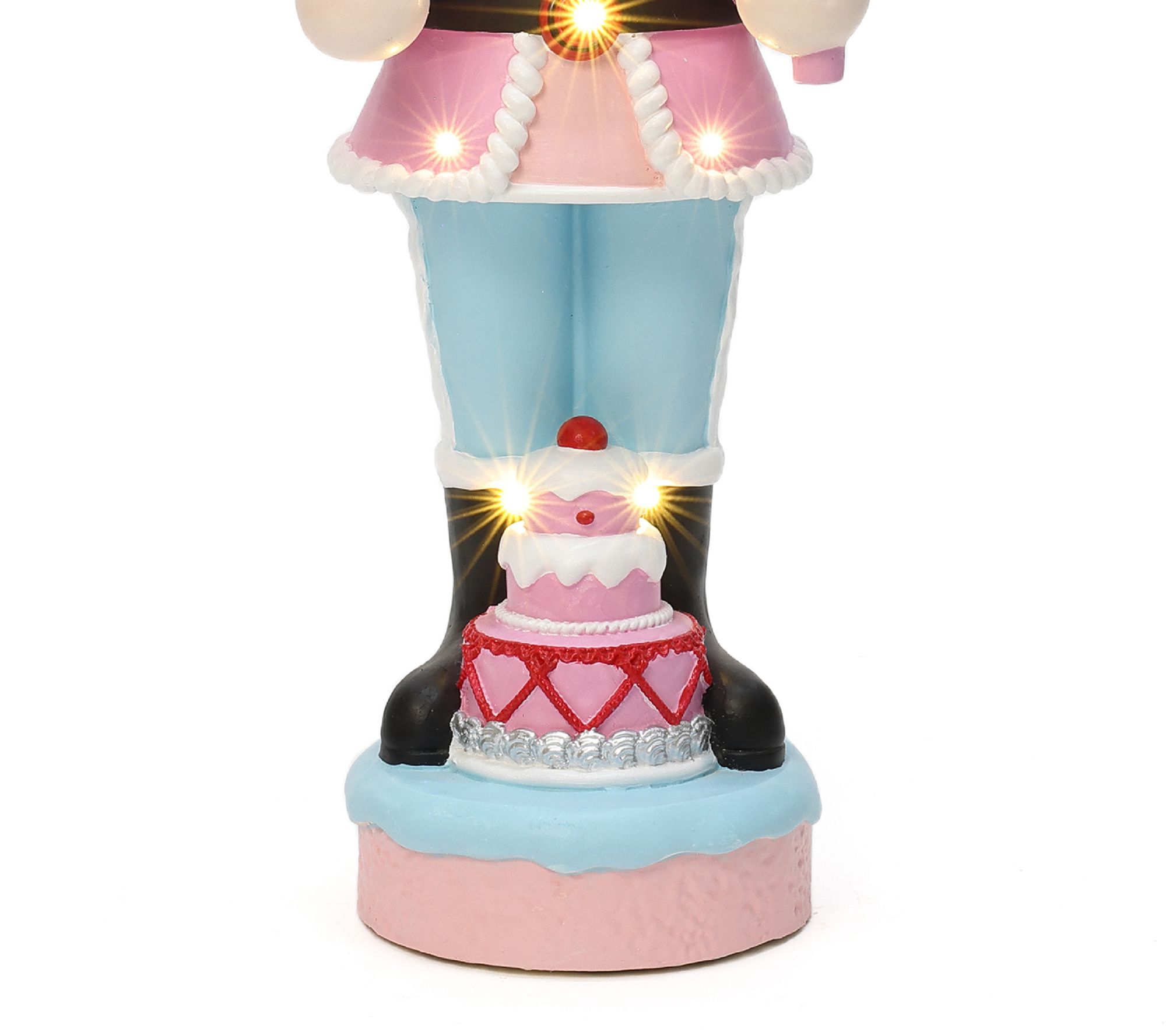 LuxenHome 4ft Lighted Pink Nutcracker with Cake, Xmas Decor