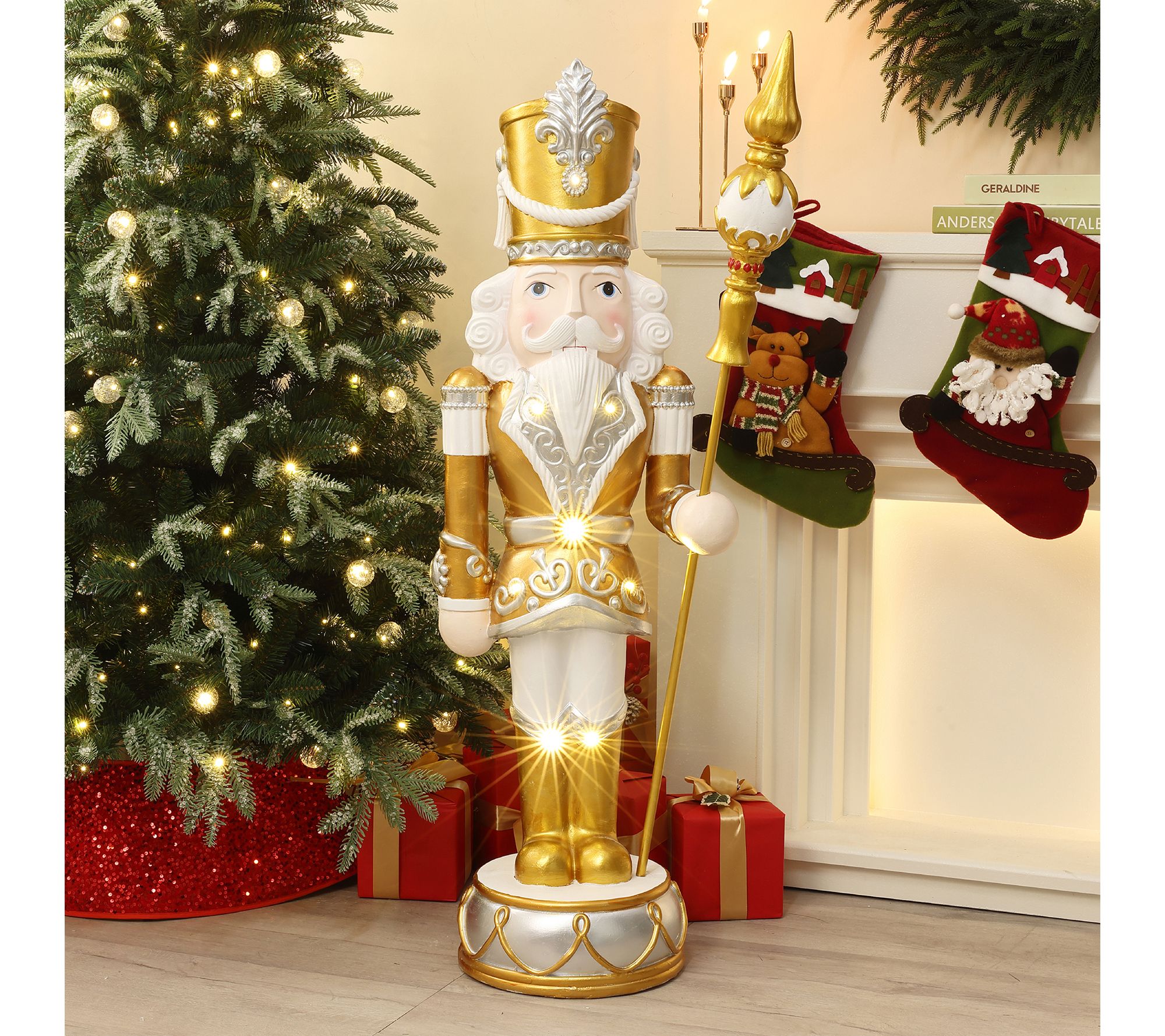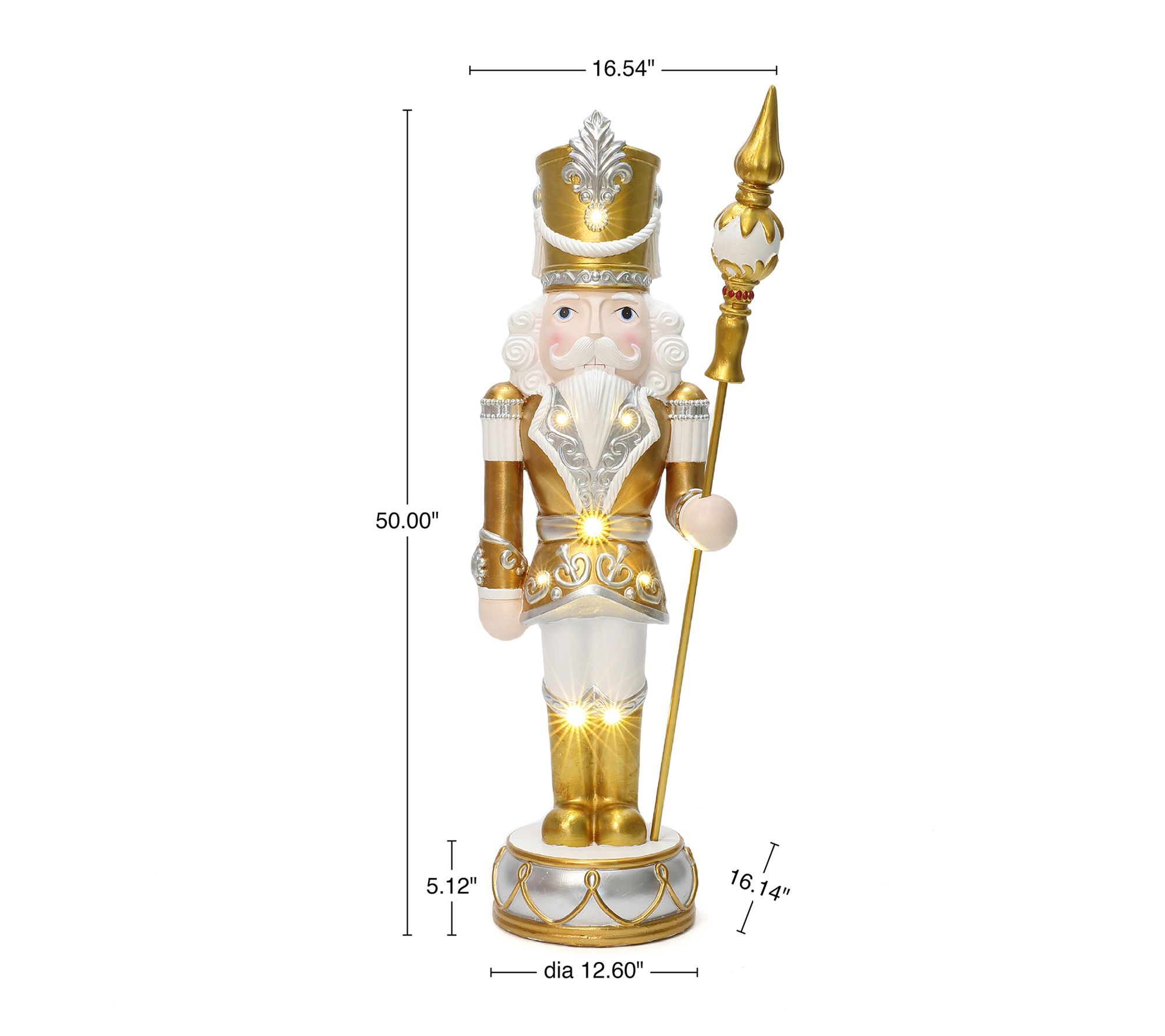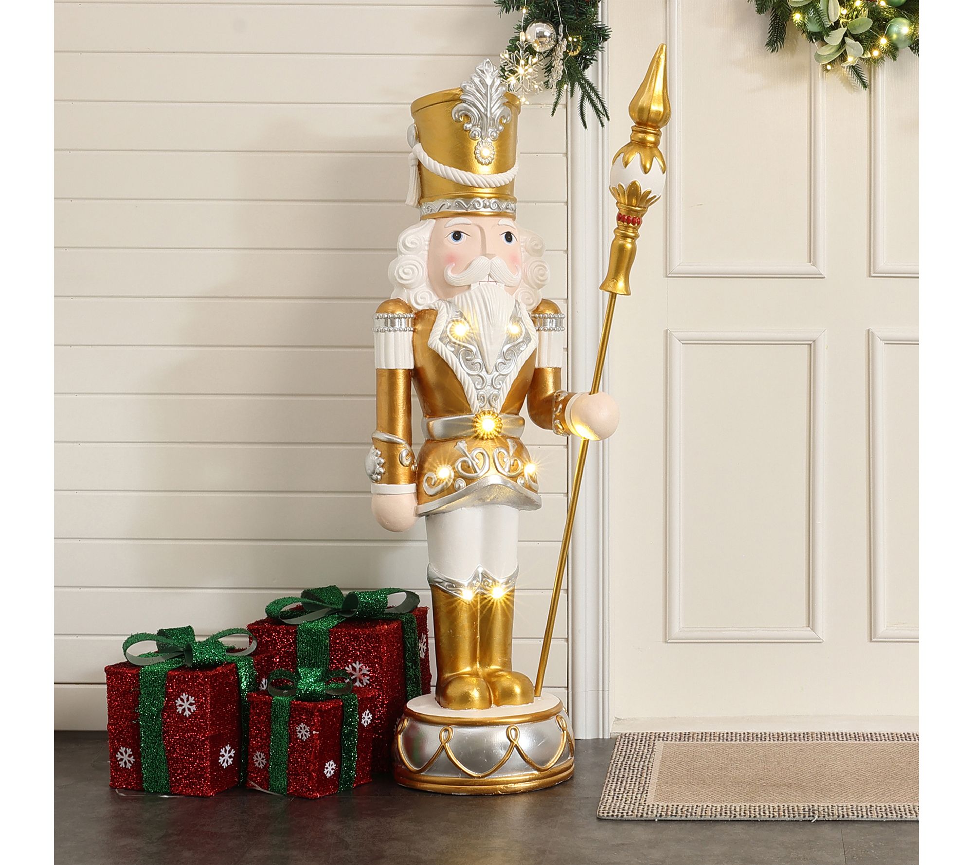 LuxenHome 4ft Lighted Silver and Gold Nutcracker with Scepter