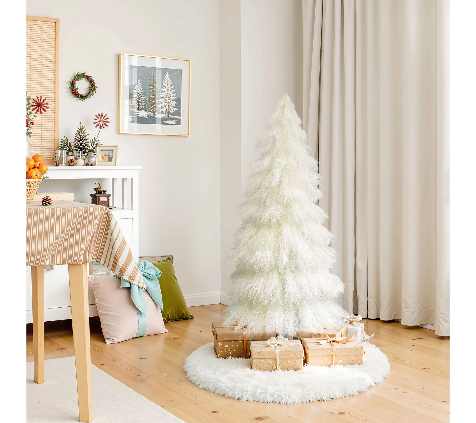 With its tall, elegant silhouette and fluffy ivory branches, this pampas grass Christmas tree instantly adds an artistic touch to your holiday decor. Create a warm gathering space in your living room or make your seasonal display stand out with unexpected texture and style. Sturdy construction makes it easy to customize the shape for a festive centerpiece. From LuxenHome.