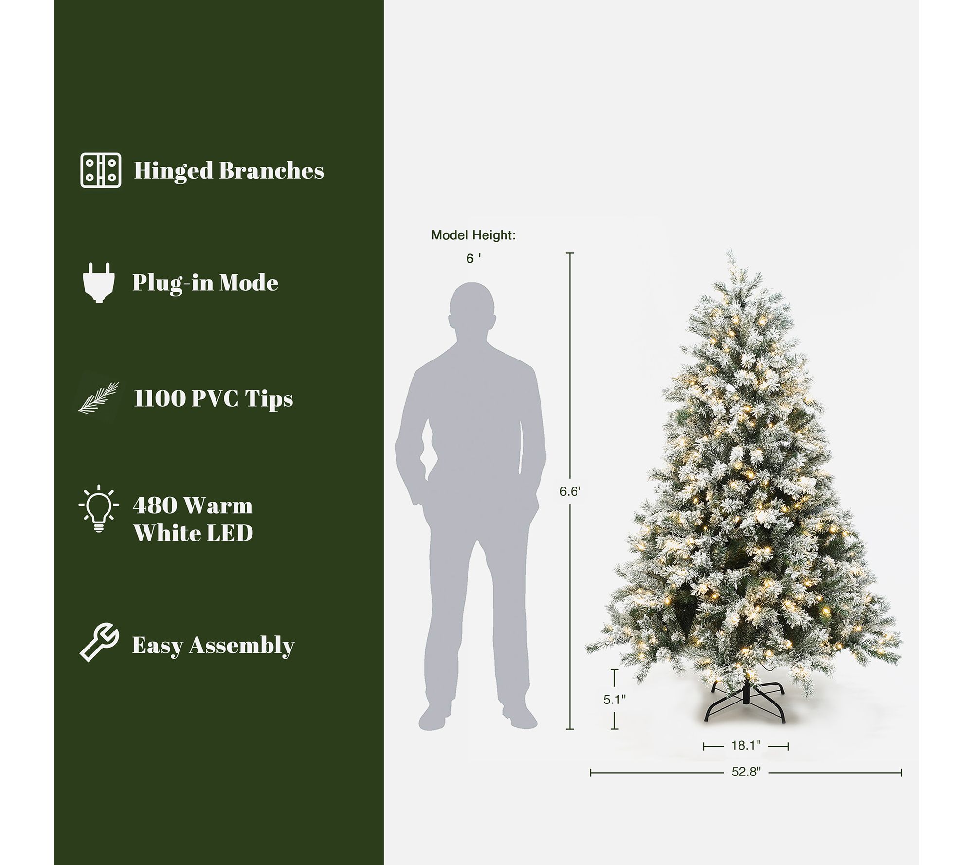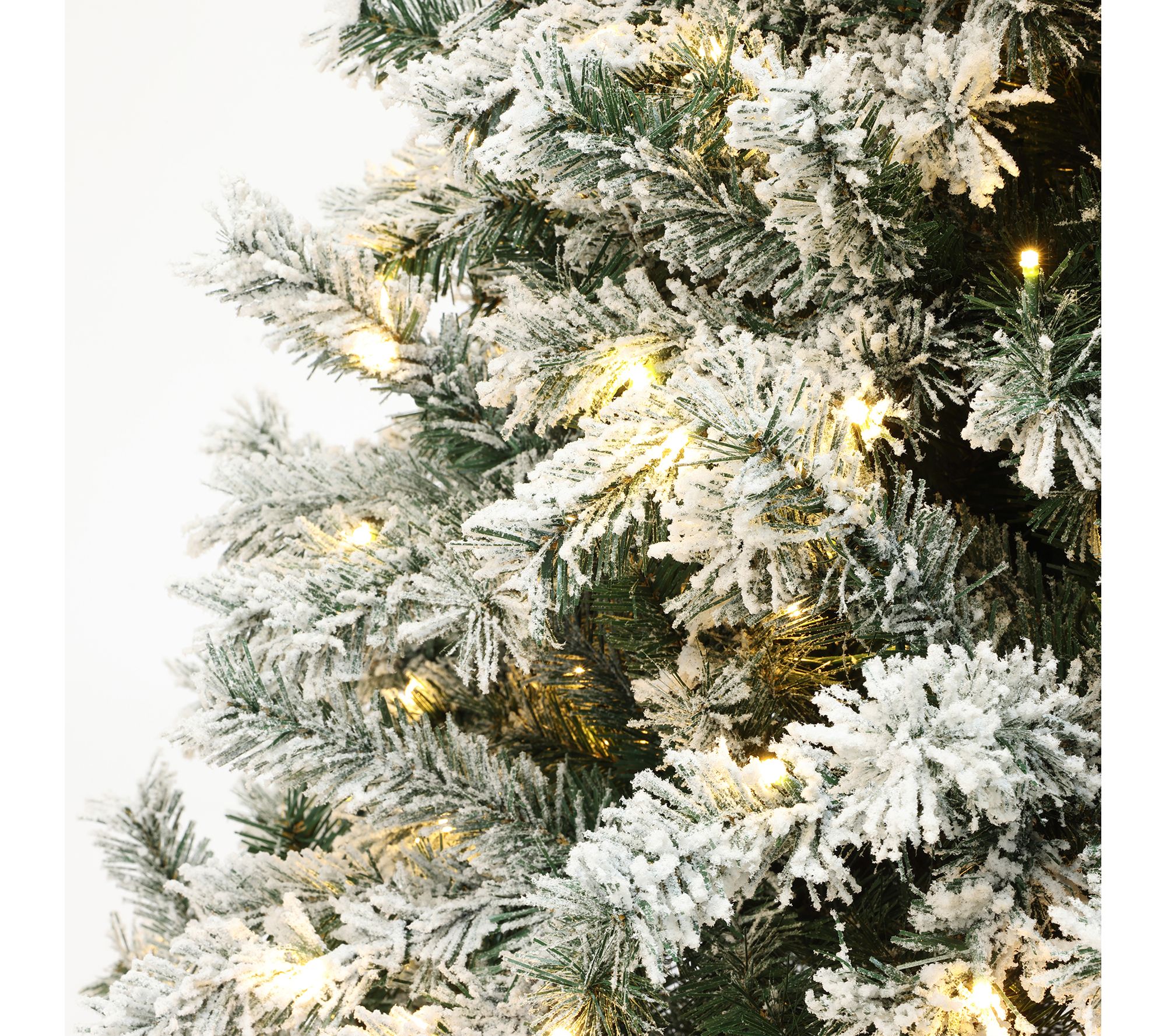 • Dense fir shape with white flocked finish