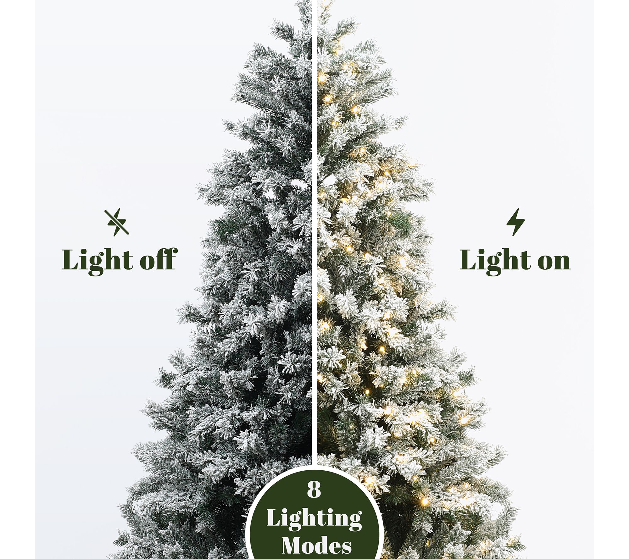 Transform your home into a winter wonderland with this flocked Christmas tree, featuring plush branches and snow-dusted tips reminiscent of a snowy forest. The dazzling LED lights offer eight settings that you can easily adjust to create a cozy glow or a festive sparkle, whether you're hosting a holiday gathering or enjoying quiet nights in. From LuxenHome.