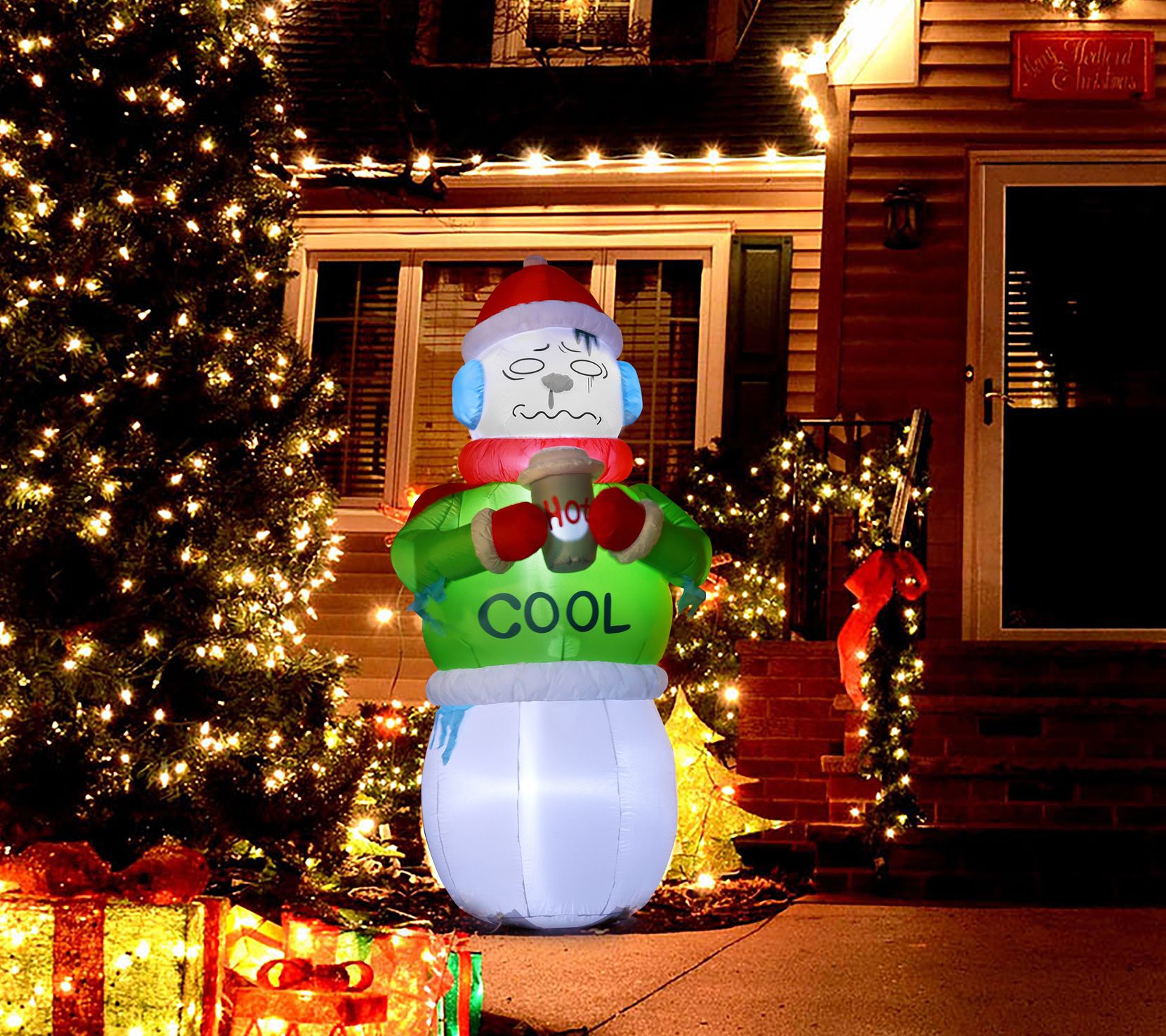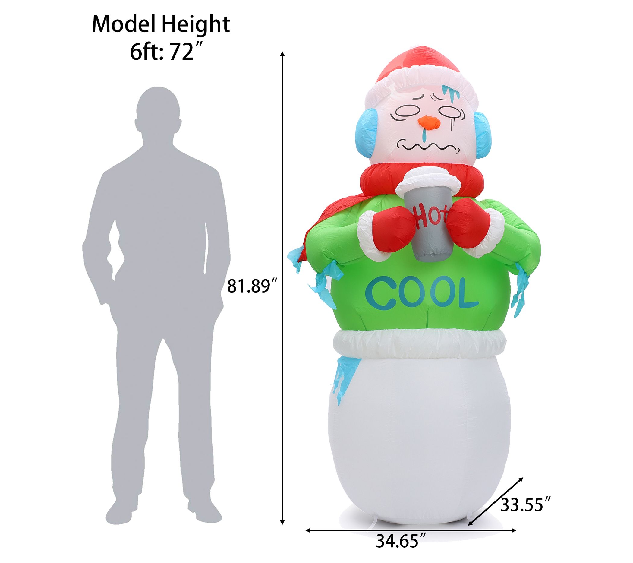 LuxenHome 6.8' Shivering Snowman in Ugly Sweate r Inflatable