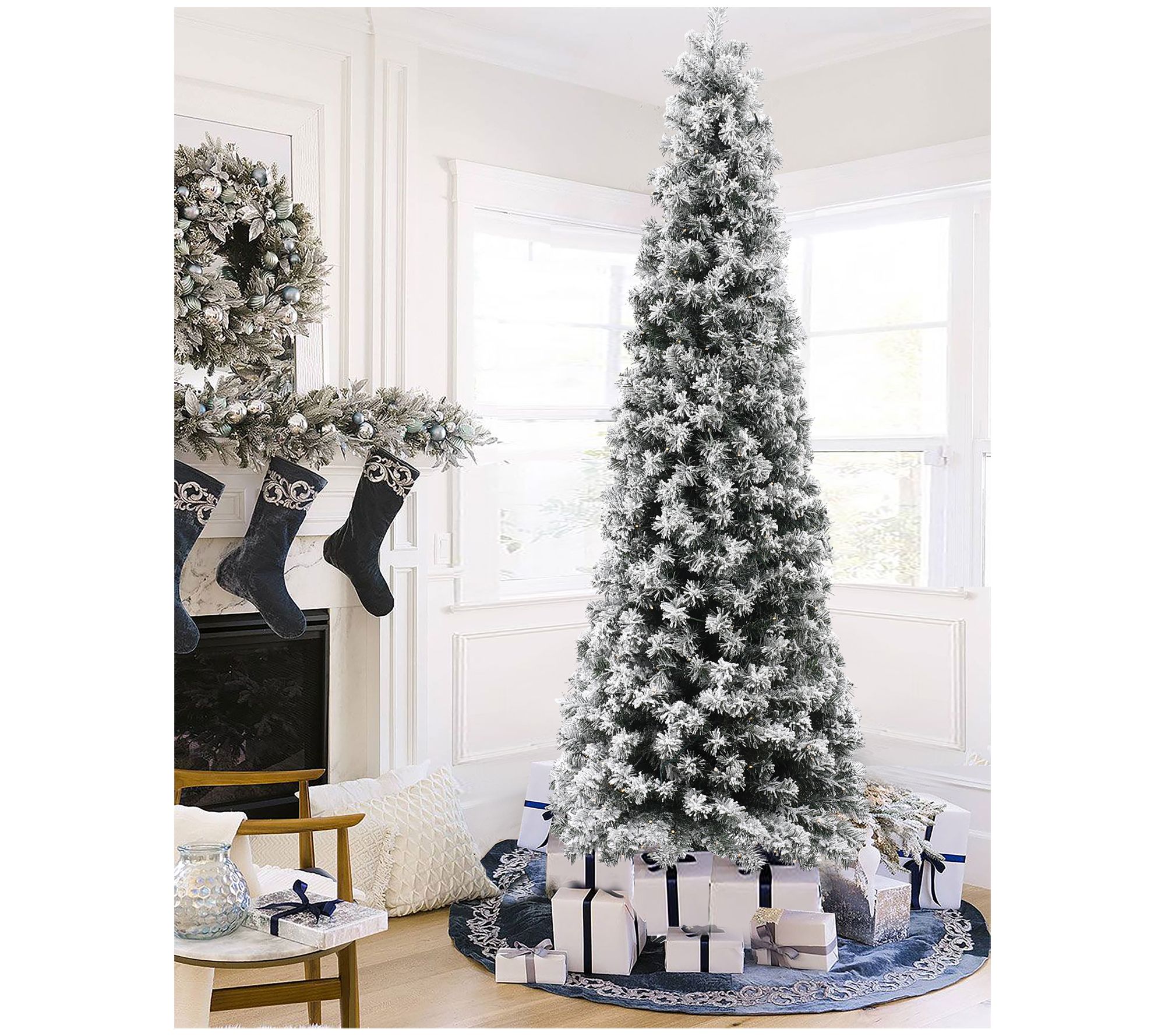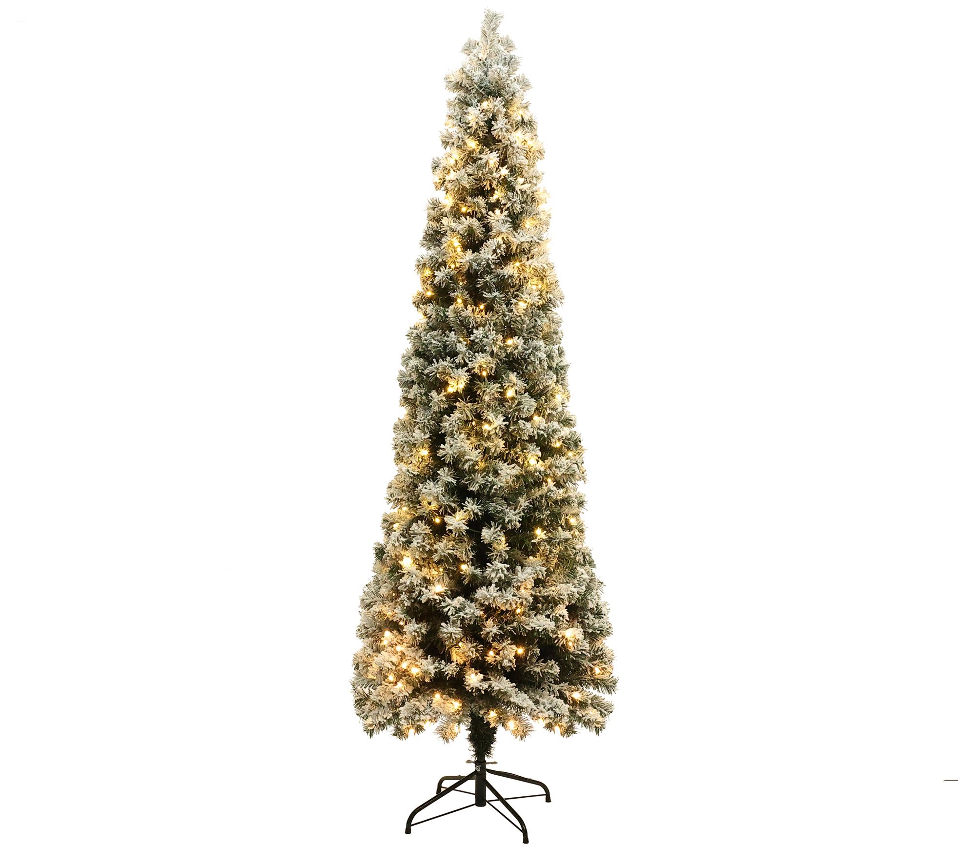 LuxenHome 7' Pre-Lit Artificial Flocked Slim Fi r Tree