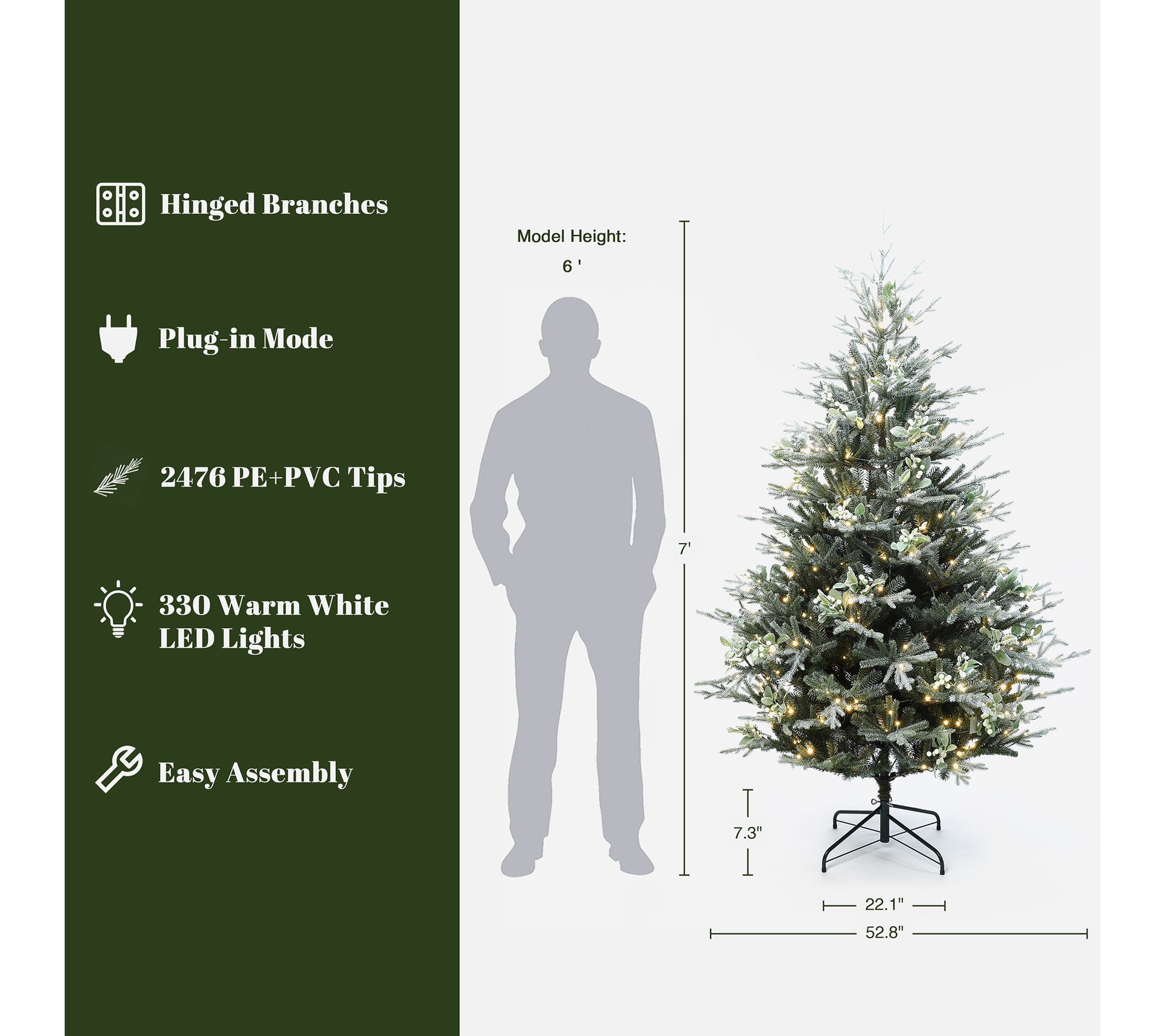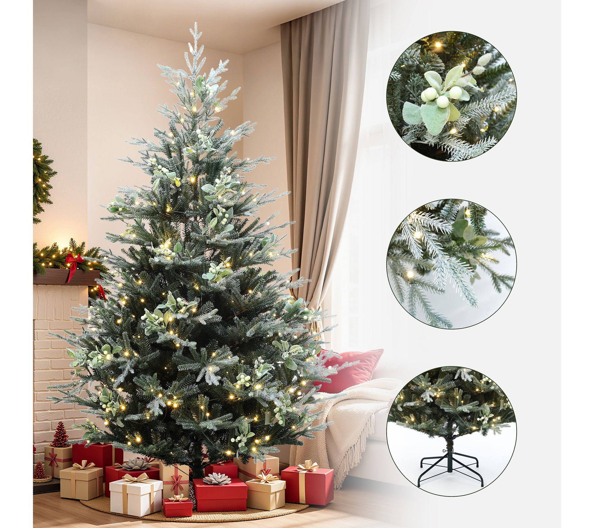 • Soft-touch PVC and PE branch tips with realistic mistletoe decorations and red berries